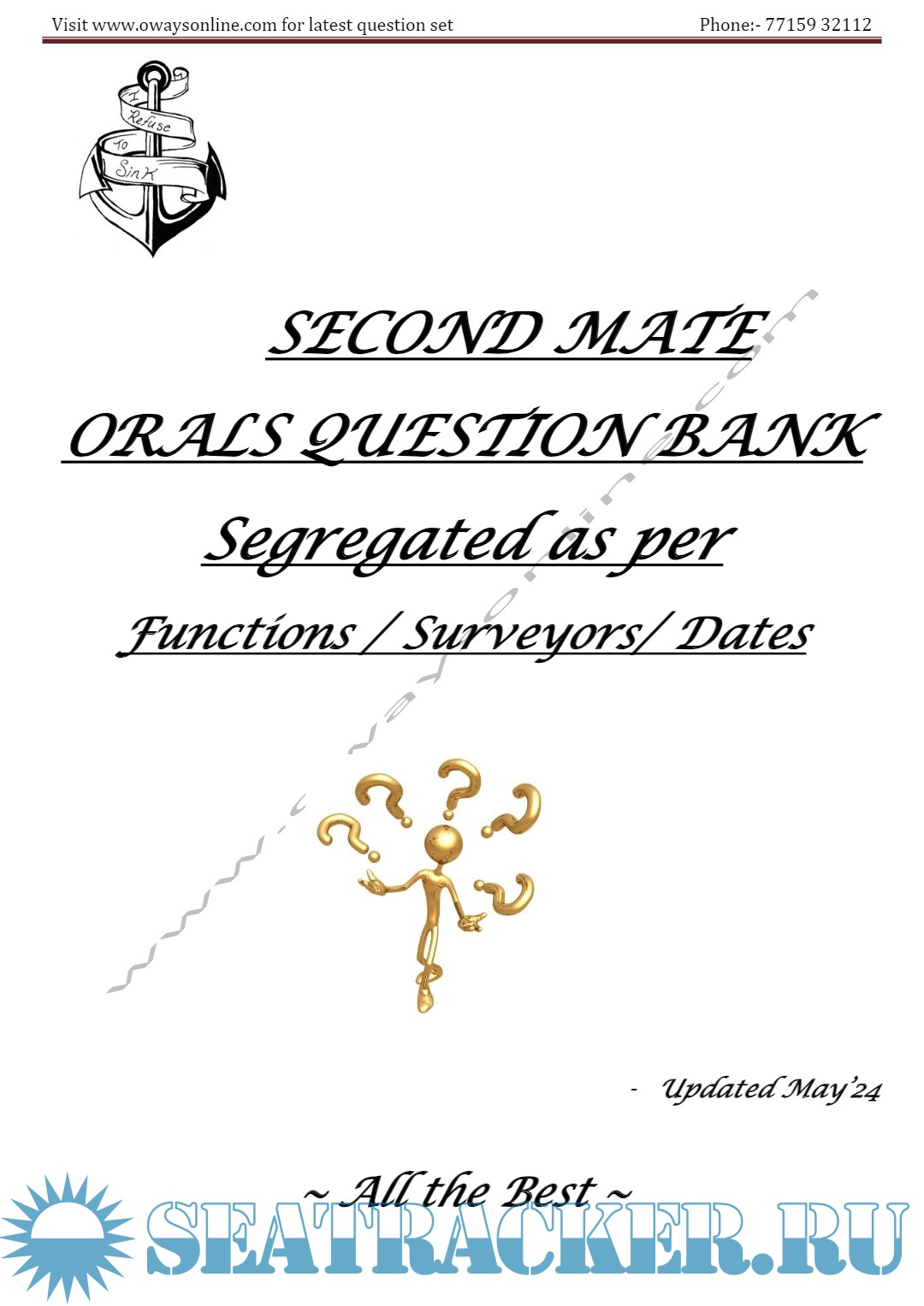 Description: 2nd Mate MMD Orals Exams Surveyor Question Set Mumbai.Question set arranged in the order Functions / surveyors / Dates.Please