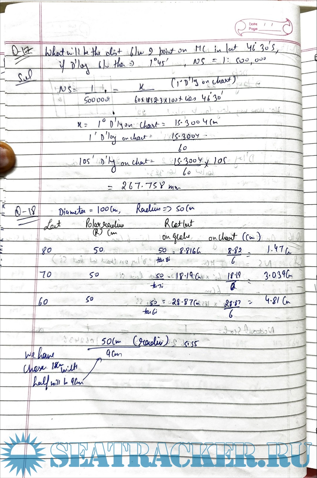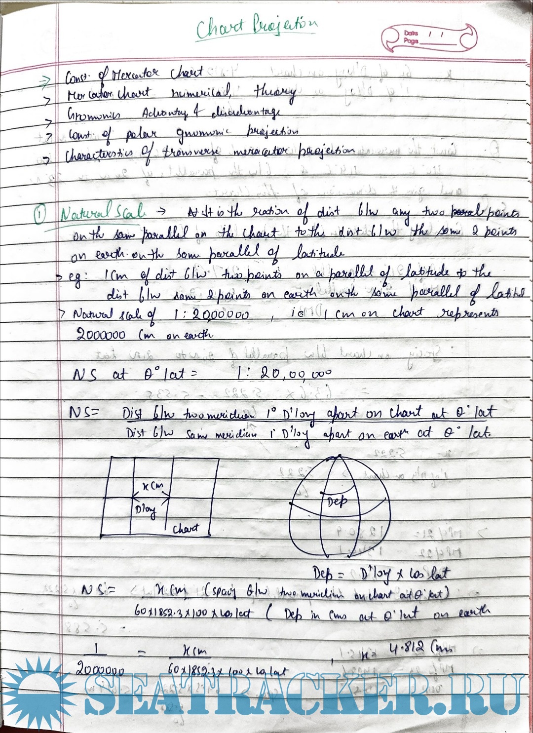 Description: Paper: Terrestrial and Coastal NavigationStream: Phase I (Chief Mate F.G.)Handwritten Notes.Solutions for Capt. R.K. Sood Chart Projection Theory and Numericals for Mercantile Marine Department (MMD), India Examinations.