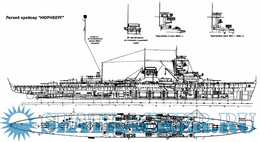 Германские легкие крейсера Второй Мировой войны "Эмден”, "Кенигсберг”, "Дрезден", "Карлсруэ”, "Нюрнберг”