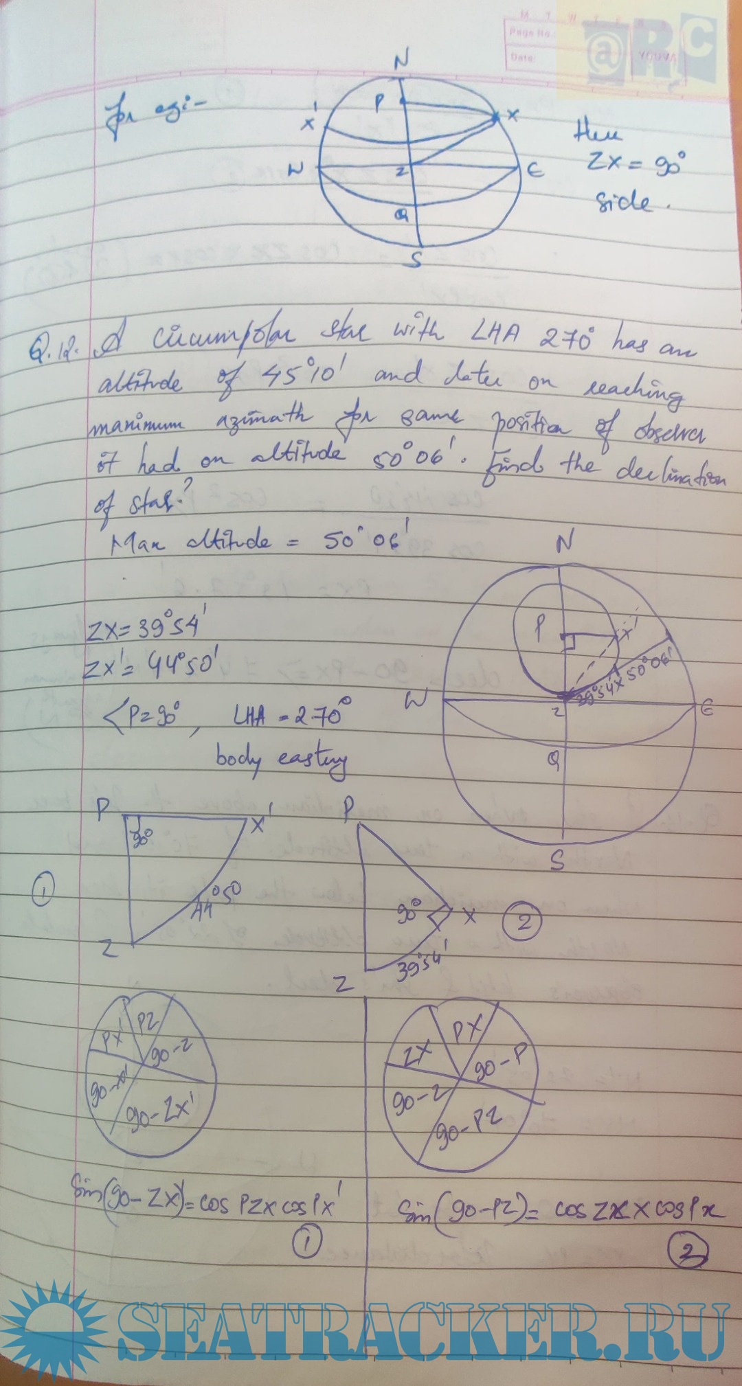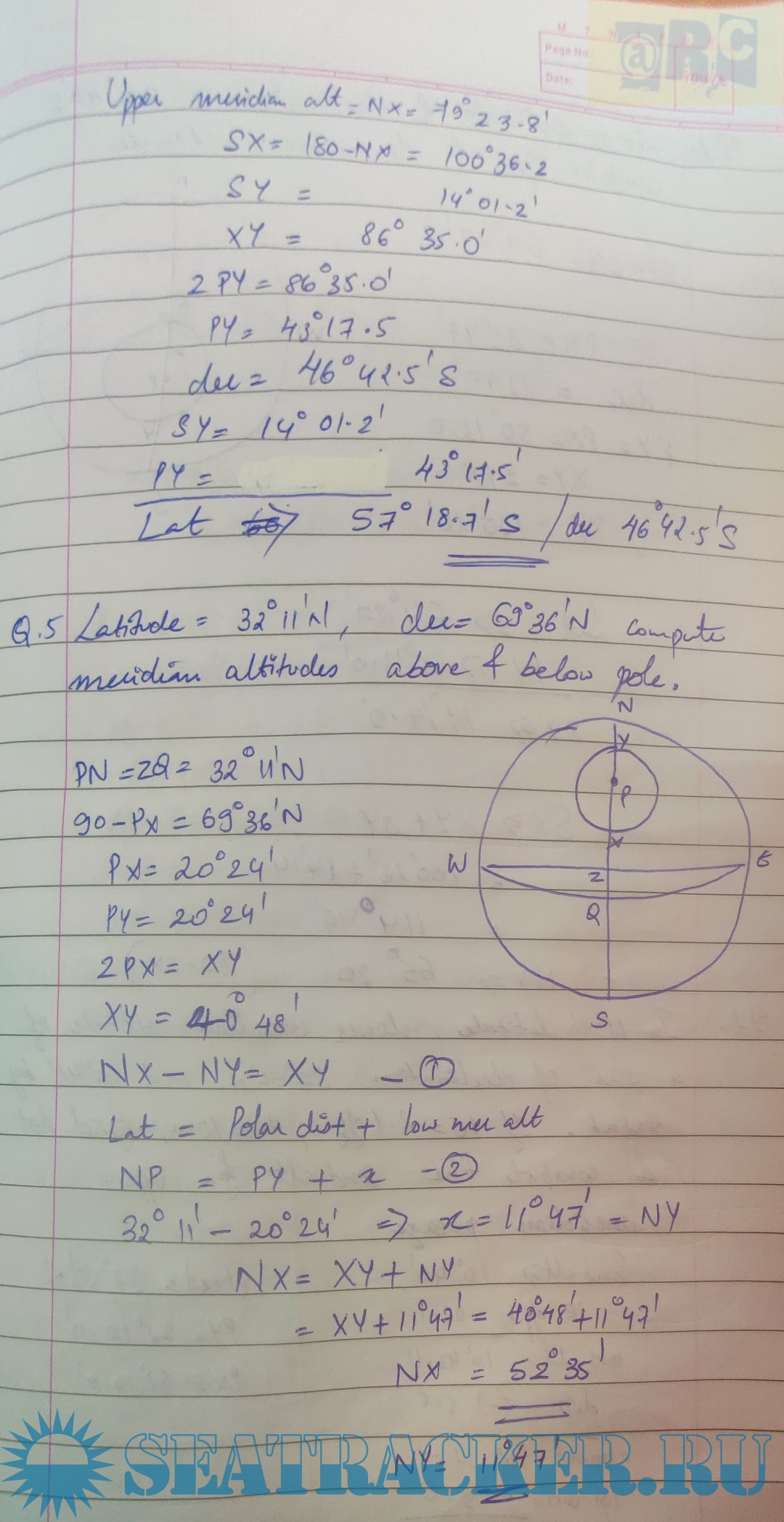 Solutions for Celestial Navigation Part B Numericals for Mercantile Marine Department (MMD), India Examinations for Phase I (Chief Mate F.G.)