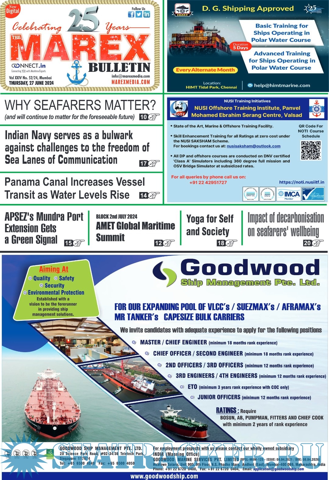 The Leading magazine for seafarers to locate Ship-board Employment opportunities, Training Institutes, Shipping companies.