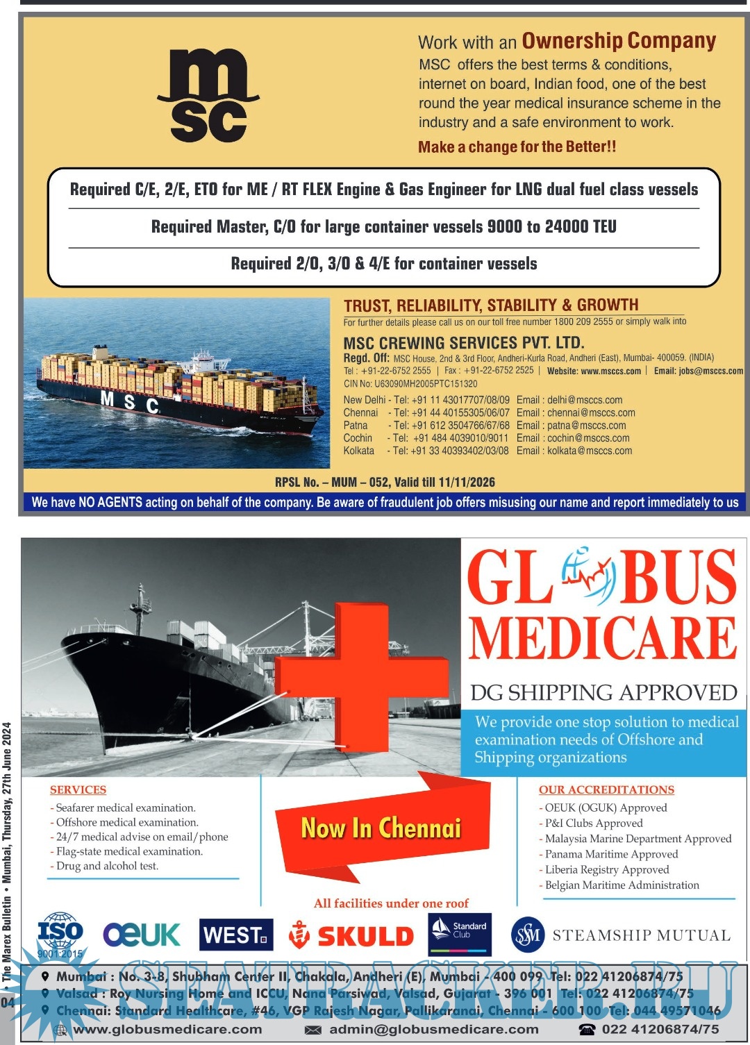 Description: The No. 1 Twice weekly employment magazine for Seafarers.