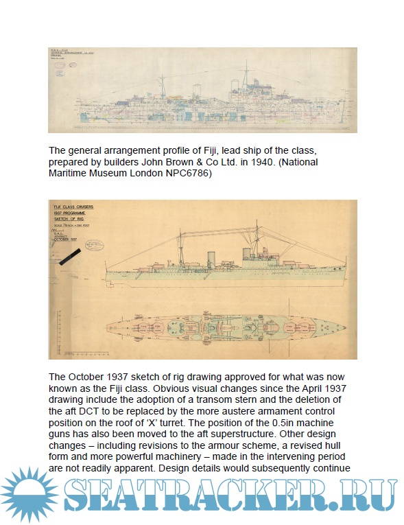 Description: The Fiji-class, often called the “Colony” class, cruisers were a class of eleven light cruisers of the Royal Navy that saw extensive service throughout World War II. They were an attempt to incorporate the characteristics of the preceding “Town” class within the reduced 8,000-ton limit agreed under the 1936 London Treaty. In general layout, Colony class resembled the earlier class but adopted upright rather than raked funnels and masts. The use of a flat, transom stern conferred both hydrodynamic and internal space advantages. The author details the development, design, and career highlights of the original class as well as the later Uganda, Minotaur and Tiger classes that were derived from them.