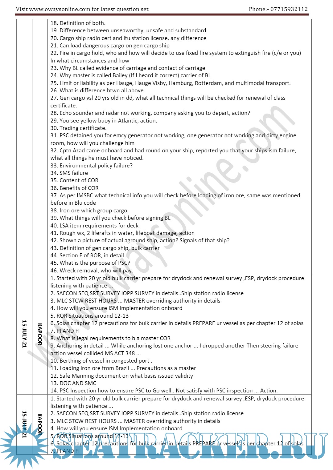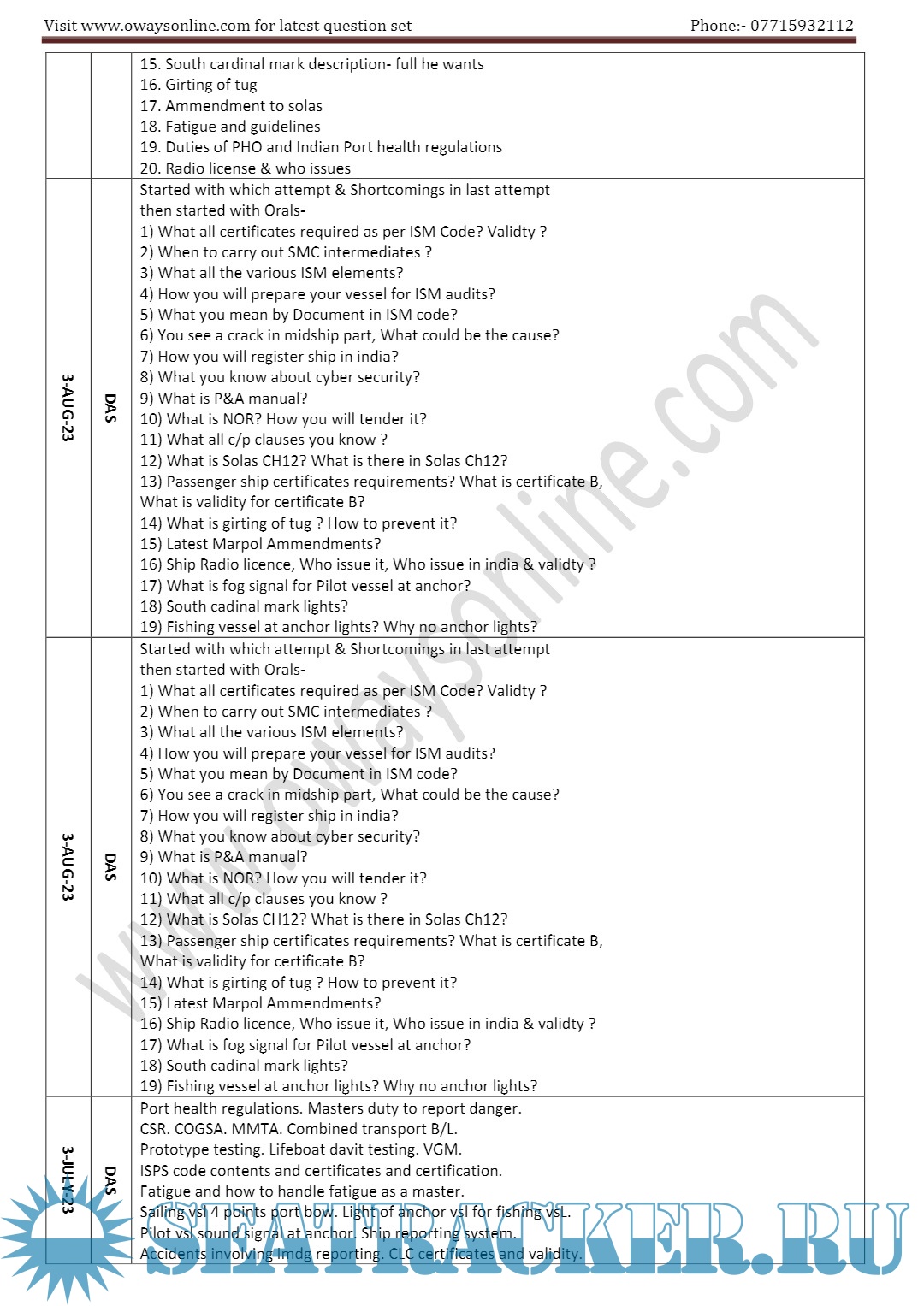 Orals Question Bank (June 2024) for ASM (Advanced Shipboard Management) / Master's Mercantile Marine Department (MMD), India Examinations
