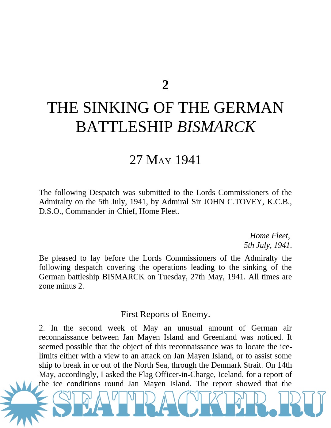 Description: Dispatches in this volume include those relating to the sinking of the German battleship Graf Spee in the Battle of the River Plate in 1939, the loss of the battleships HMS Prince of Wales and HMS Repulse in the Far East, the sinking of the German battle cruiser Scharnhorst in 1943, the attack on Tirpitz by midget submarines, the contribution by British Pacific Fleet to the assault on Okinawa in 1945 (which included four Royal Navy battleships), and the sinking of Bismarck in 1941.