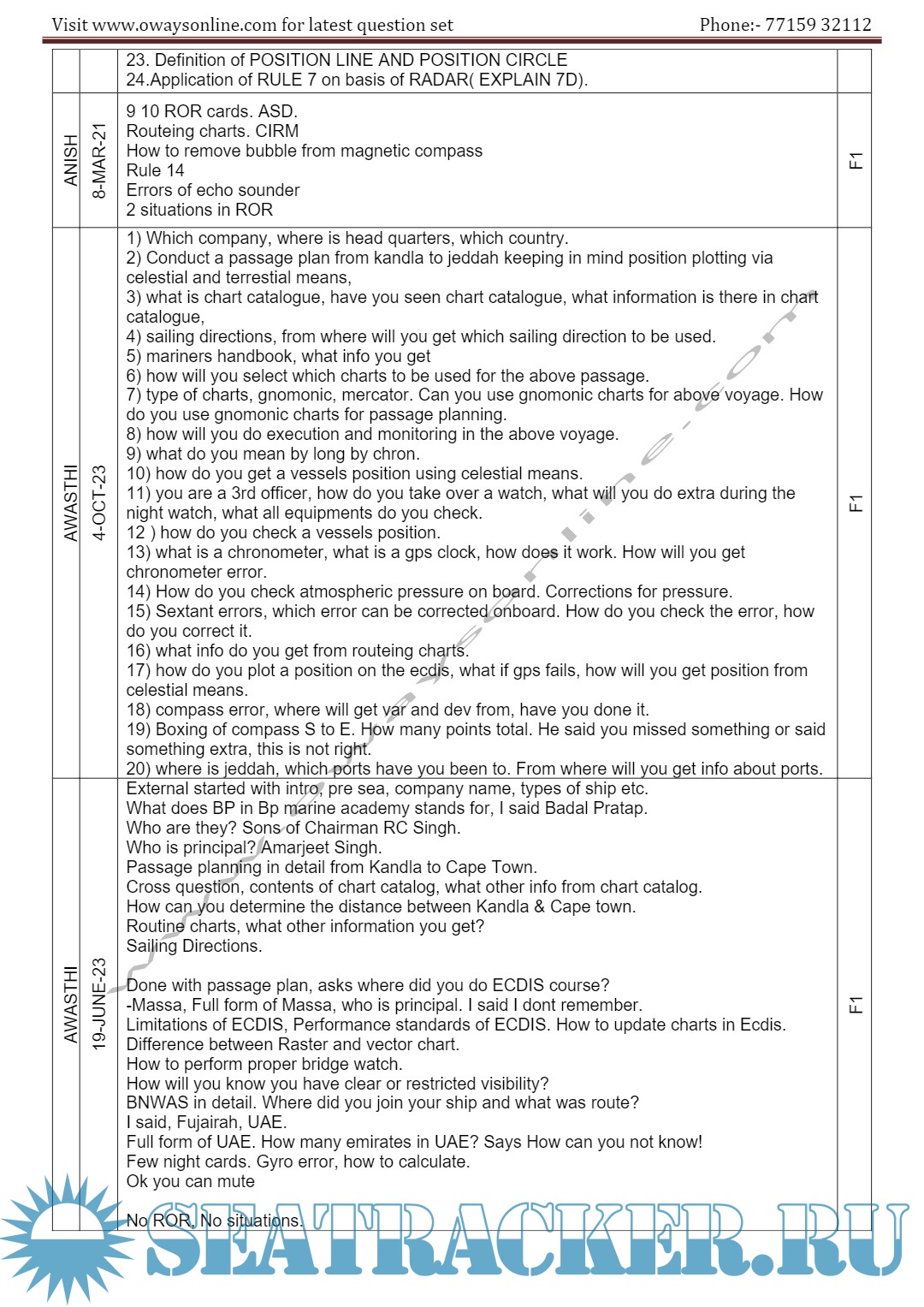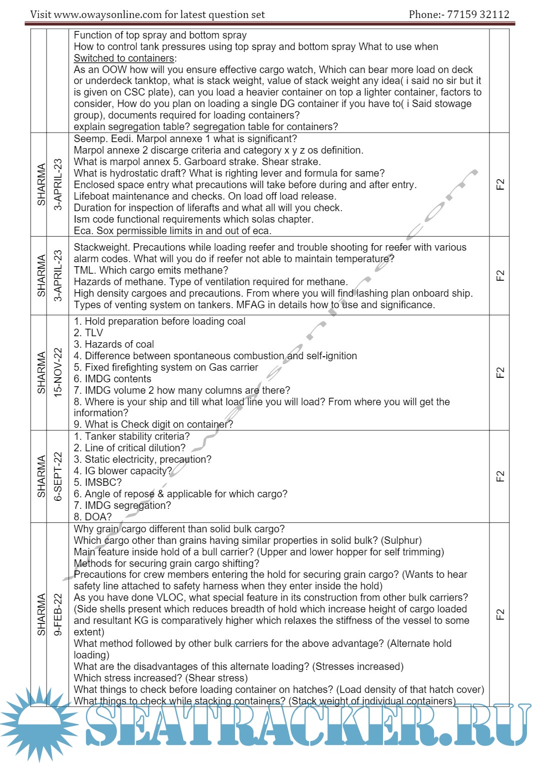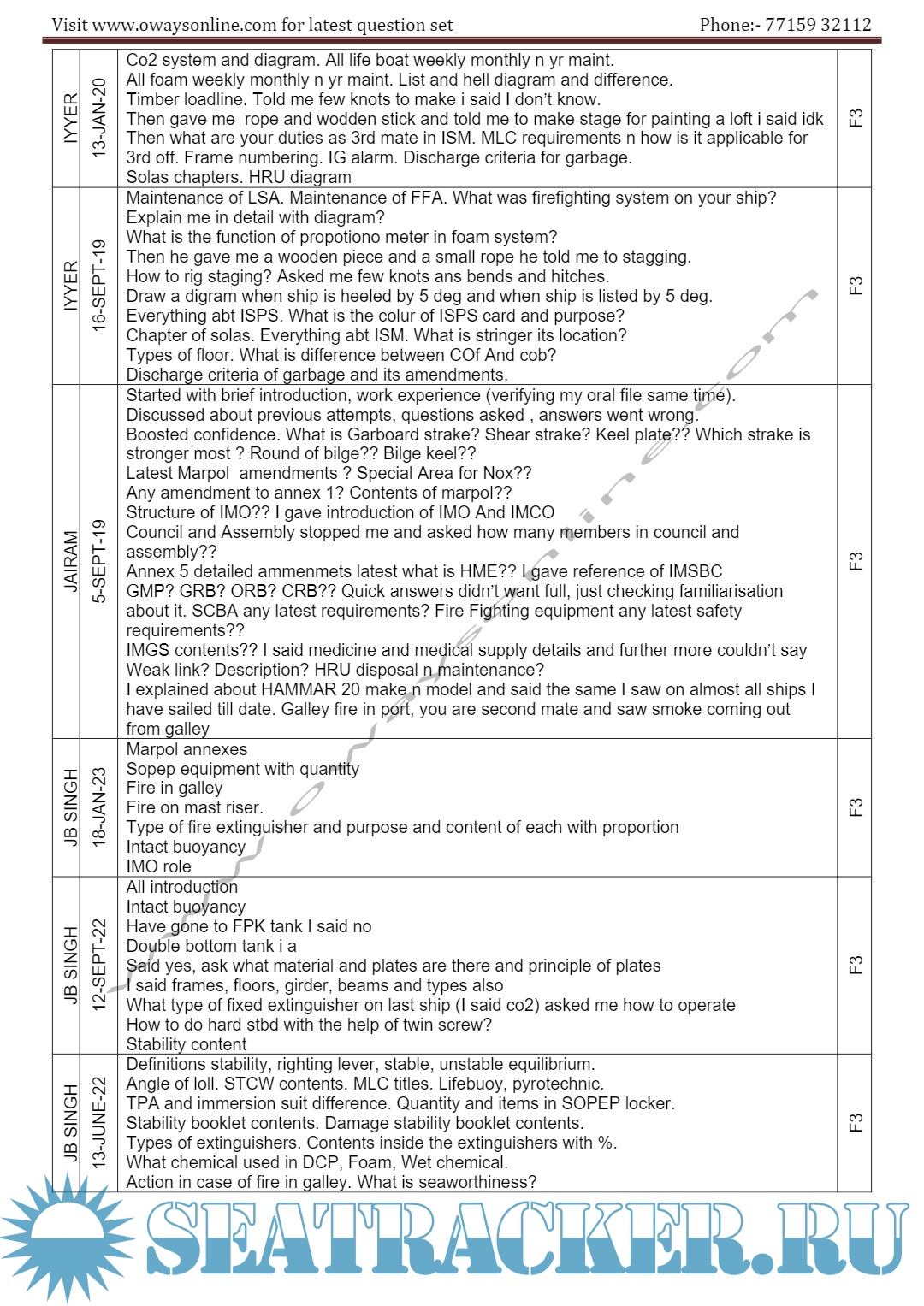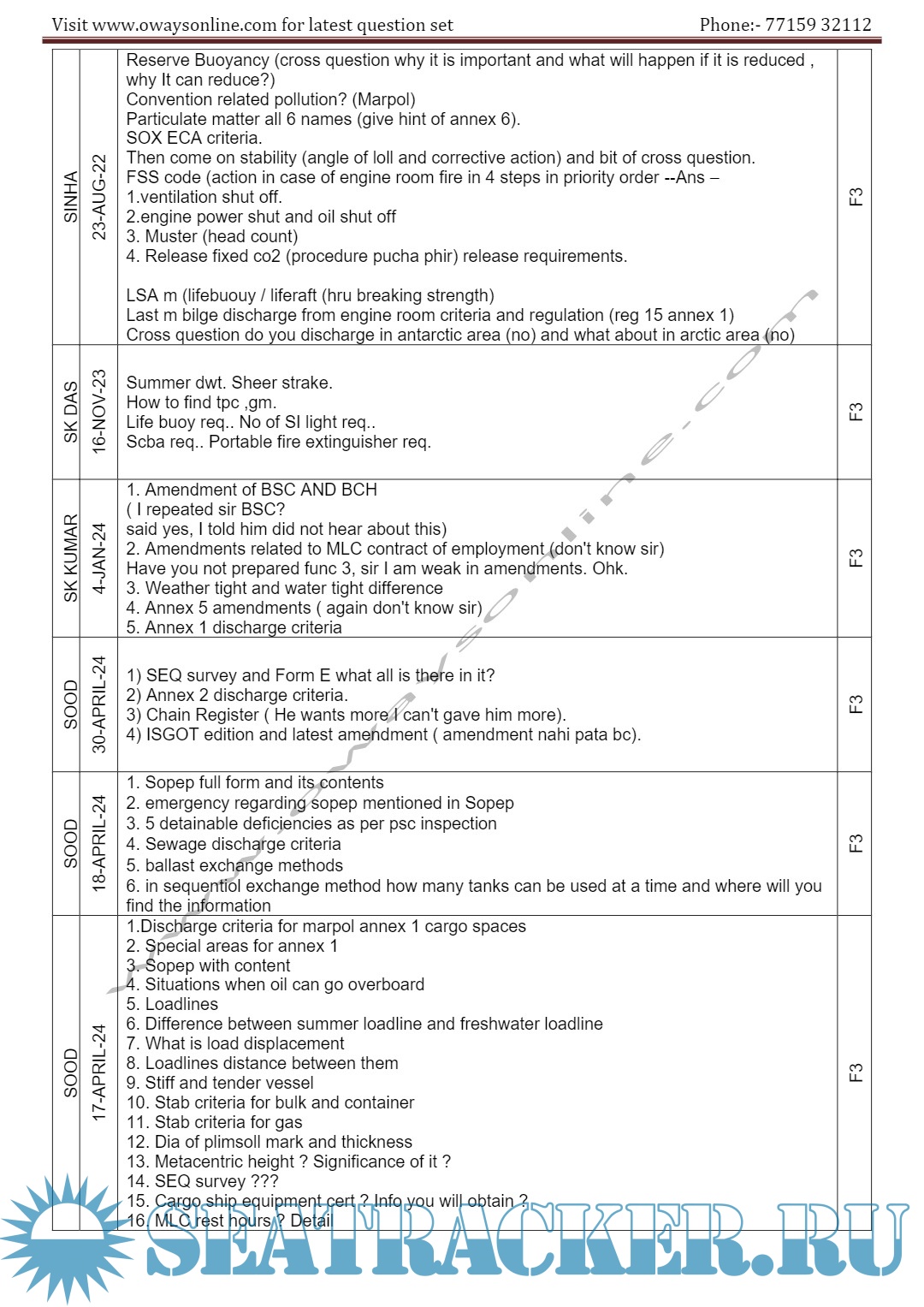➢ You might find some questions quite old, as those surveyors still comes in MMD/ D.G. However they are taking orals of other candidates and not Second Mates.