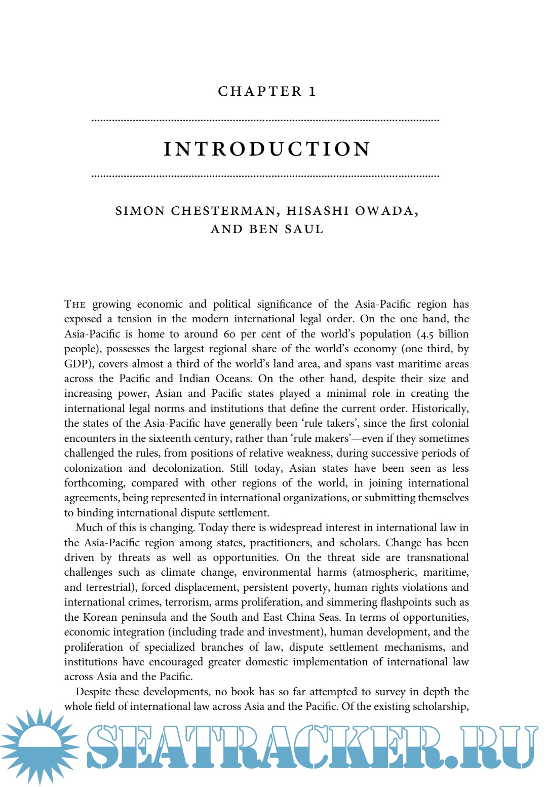 Year: 2019 Language: English Author: Simon Chesterman Publisher: Oxford University Press Edition: Kindle ISBN: 978-0-19-879385-4 Format: PDF Quality: eBook Pages count: 904 Description: The growing economic and political significance of Asia has exposed a tension in the modern international order. Despite expanding power and influence, Asian states have played a minimal role in creating the norms and institutions of international law; today they are the least likely to be parties to international agreements or to be represented in international organizations. That is changing. There is widespread scholarly and practitioner interest in international law at present in the Asia-Pacific region, as well as developments in the practice of states. The change has been driven by threats as well as opportunities. Transnational issues such as climate change and occasional flashpoints like the territorial disputes of the South China and the East China Seas pose challenges while economic integration and the proliferation of specialized branches of law and dispute settlement mechanisms have also encouraged greater domestic implementation of international norms across Asia. These evolutions join the long-standing interest in parts of Asia (notably South Asia) in post-colonial theory and the history of international law. The Oxford Handbook of International Law in Asia and the Pacific brings together pre-eminent and emerging specialists to analyse the approach to and influence of key states of the region, as well as whether truly 'Asian' trends can be identified and what this might mean for international order. Additional info: About the Author: Simon Chesterman is Dean and Professor at the National University of Singapore Faculty of Law and Editor of the Asian Journal of International Law.