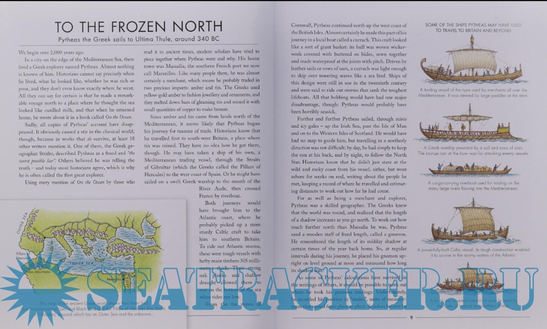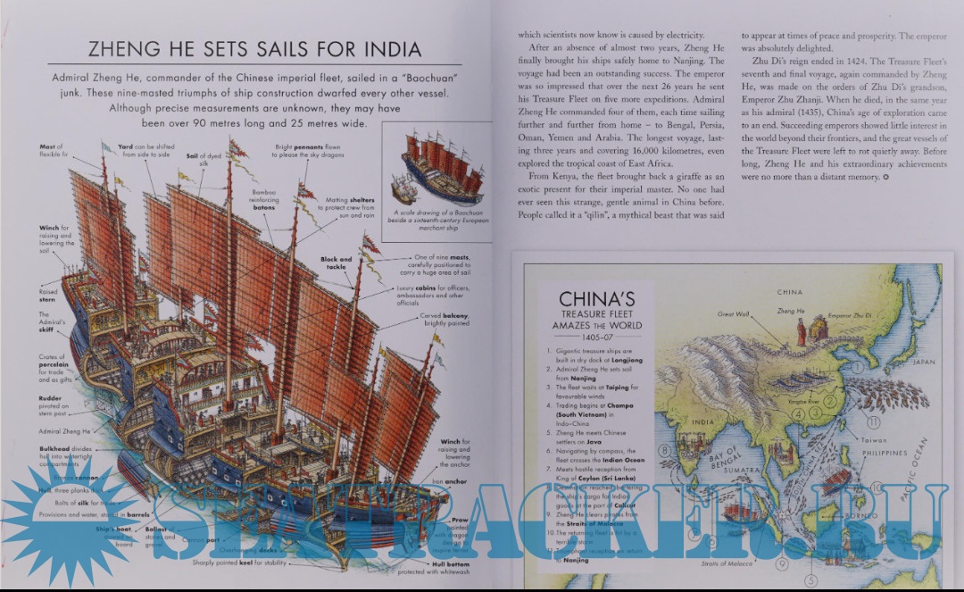 Year: 2013 Language: English Author: Biesty S., Ross S. Genre: History Publisher: Walker Books Format: PDF Quality: eBook Pages count: 65 Description: «From Pytheas the Greek, who sailed to the Arctic Circle without a compass, to Neil Armstrong landing on the moon - here are 14 extraordinary journeys by land, sea and air - each remarkable for the way it was made, for the technology behind it, and for the inspiration it gave to future generations». To the frozen North : Pytheas the Greek sails to Ultima Thule, around 340 BC. The mystery of Vinland : Leif Eriksson reaches the coast of America, AD 1003. Riding the silk road : Marco Polo's adventures in Asia, 1271-74. From China to India. Zheng He's treasure fleet crosses the Western Sea, 1405-07. Right around the world : searching for spice with Christopher Columbus & Ferdinand Magellan, 1492-1522. A southern continent? Captain Cook maps the Pacific Ocean, 1768-71. Inside Africa : steaming upriver with David Livingstone, 1858-64, and Mary Kingsley, 1895. Over the North Pole: Umberto Nobile flies across the Arctic, 1928. Above and below : the Piccards soar to the stratosphere and plunge to the Mariana Trenc, 1932-60. On the roof of the world : Tenzing Norgan and Edmund Hillary scale Mount Everest, 1953. Man on the moon : Apollo 11 rockets into space, 1969.