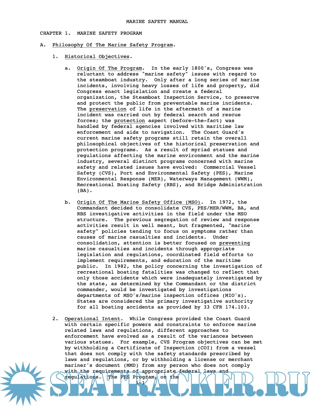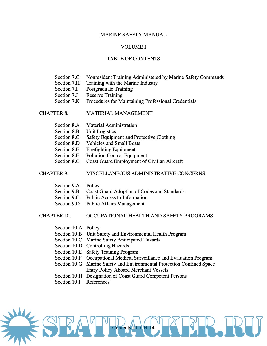 Description: The MSM is the primary policy and procedural statement for the marine safety programs of the Coast Guard. Published for the use of all Coast