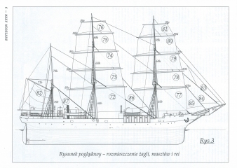 43 листа цветных выкроек и инструкций для изготовления бумажной модели польского парусника STS ''Lwów'' в масштабе 1:100