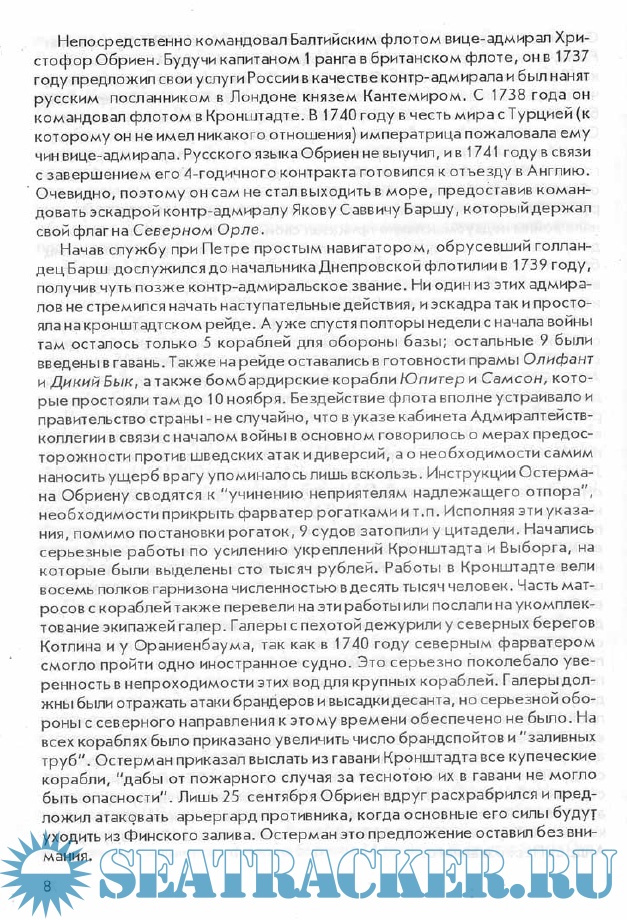 Год выпуска: 2000 Язык: Русский Автор: М.А. Муравьев Жанр: История Издательство: МКИФ Формат: PDF Качество: Отсканированные страницы Количество страниц: 53 Описание: Модное ныне понятие забытая война как нельзя лучше подходит к этому военному конфликту на Севере Европы в середине XVIII века. В полной мере это относится и к действиям на море 1741 - 1743 годов, о чём нет практически ни одного специального современного исследования. В появившихся же в последние годы многочисленных работах общего характера по русской морской истории события этой войны на Балтике упоминаются в лучшем случае мельком, а нередко о противостоянии двух европейских морских держав в 1741 -1743 годах авторы этих фундаментальных трудов вообще не говорят ни слова. Этот пробел в историографии Российского Флота и призвана восполнить предлагаемая вашему вниманию книга.