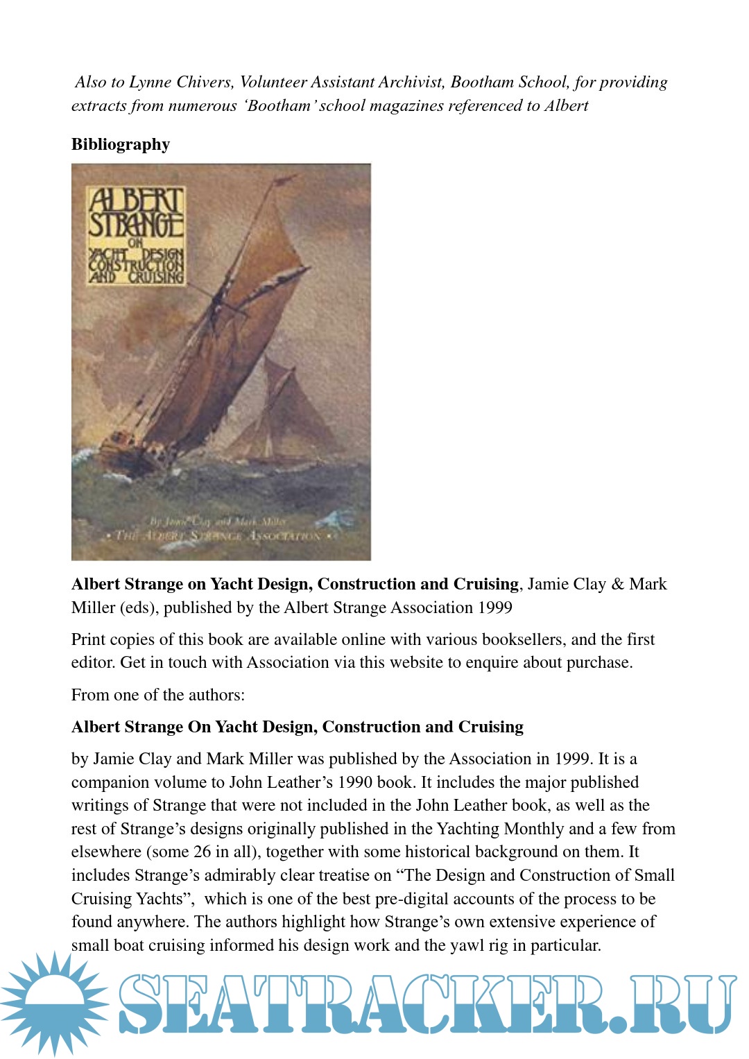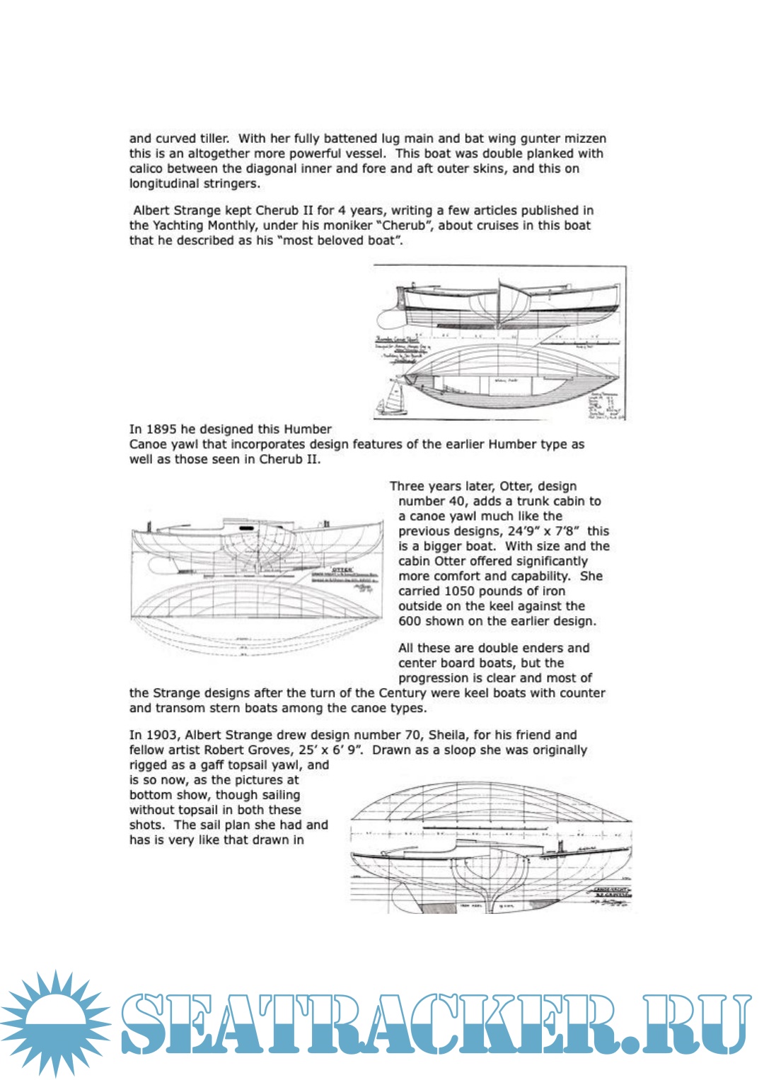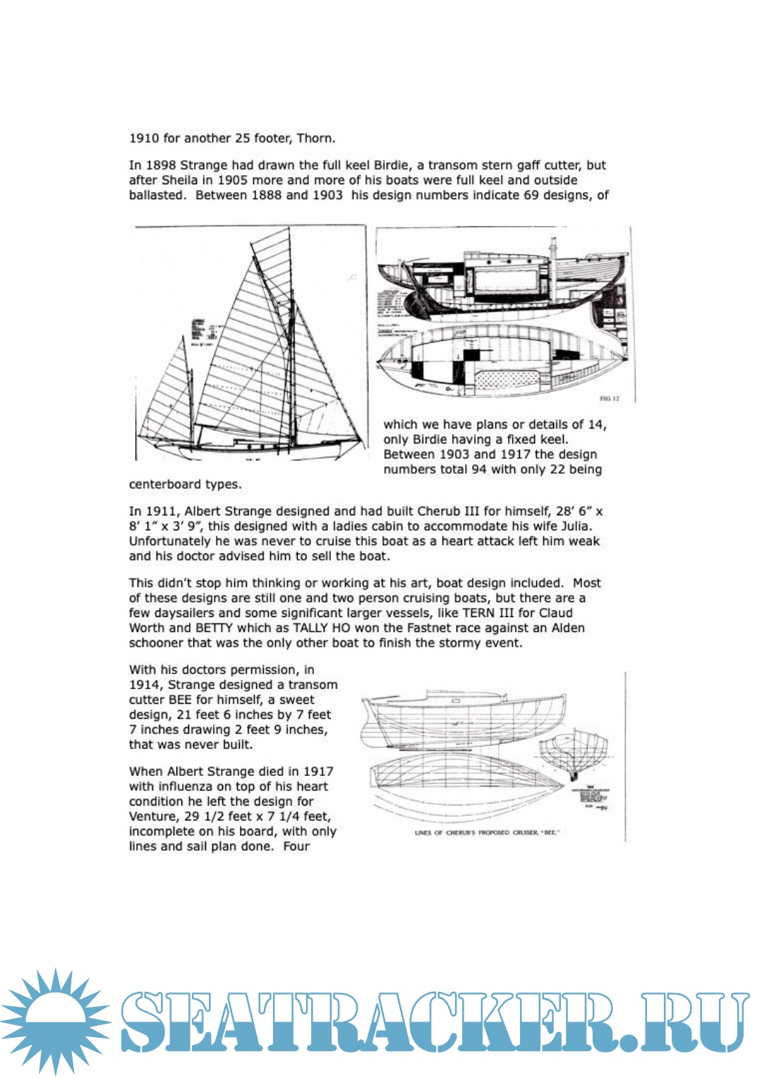 Year: 2024 Language: English Author: - Genre: History Publisher: Albert Strange Association Format: PDF Quality: eBook Pages count: 43 Description: The work of Albert Strange has been admired and respected by yachtsmen for more than a hundred years. Though never professionally trained as a naval architect, Strange designed some 150 craft of varying size and style. Some were drawn on spec, others for design competitions, still others for commissioning clients. Some were never built whilst, of those that were, many still grace the world’s harbours and anchorag Additional info: Contained materials https://seatracker.me/viewtopic.php?t=62456