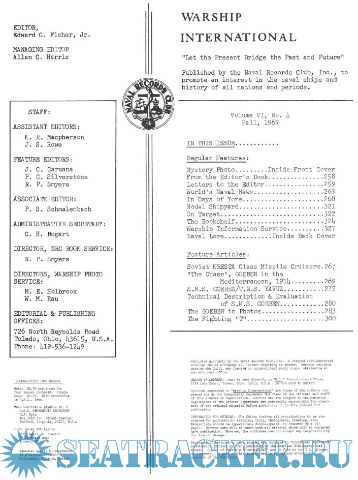 Warships International - Winter - vol VI, №4 - Fisher E.C. (Editor) [1969, PDF]