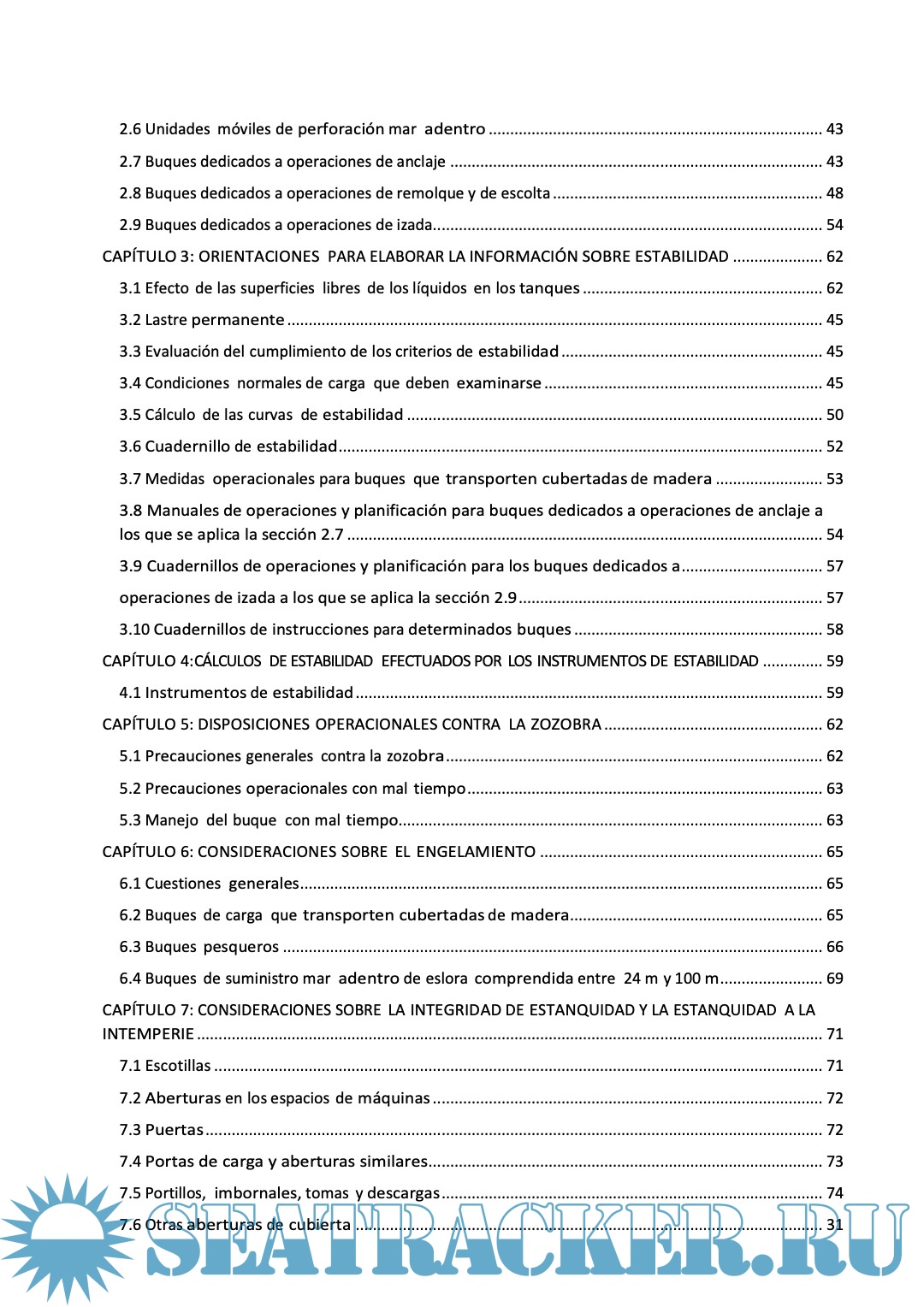Year: 2018 Language: Spanish Author: Dirección General de la Marina Mercante Genre: Normative document Publisher: DGMM Edition: 1 ISBN: na Format: PDF Quality: eBook Pages count: 137 Description: 1 El presente código ha sido elaborado con objeto de ofrecer en un solo documento las disposiciones obligatorias de la Introducción y la parte A, junto con las disposiciones recomendadas de la parte B sobre estabilidad sin avería, basadas primordialmente en los actuales instrumentos de la OMI. En los casos en que las recomendaciones del presente código difieran aparentemente de las de otros códigos de la OMI, prevalecerá lo dispuesto en dichos códigos. A fin de que sea lo más completo posible y para conveniencia del usuario, el presente código incluye también disposiciones que proceden de instrumentos obligatorios de la OMI. 2 El presente código está inspirado en los conceptos más recientes del sector disponibles en el momento de su elaboración, teniendo en cuenta sólidos principios de proyecto e ingeniería y la experiencia adquirida en la explotación de estos buques. Por otra parte, la técnica de proyecto de los buques modernos evoluciona con rapidez, por lo que el código, en lugar de permanecer estático, debería ser objeto de la evaluación y revisión necesarias. Con tal finalidad, la Organización examinará regularmente el presente código teniendo presentes tanto la experiencia como las innovaciones que se produzcan. 3 Se tuvieron en cuenta una serie de fenómenos, tales como la condición de buque apagado, la acción del viento en buques con mucha superficie expuesta, las características de balance, mala mar, etc., basados en la tecnología más avanzada y en los conocimientos más recientes del sector en el momento en que se elaboraba el presente código. 4 Se ha reconocido que, dada la gran variedad de tipos y tamaños de los buques, así como la diversidad de condiciones operacionales y ambientales, no era posible resolver de manera general todos los problemas de seguridad que desde el punto de vista de la estabilidad se plantean para impedir los accidentes. En particular, la seguridad del buque en mar encrespada encierra fenómenos hidrodinámicos complejos que hasta el momento no se han investigado y comprendido adecuadamente. El buque en mar encrespada ha de concebirse como un sistema dinámico en el que las relaciones que se establecen entre el propio buque y las condiciones ambientales, como por ejemplo la influencia del oleaje y el viento, constituyen elementos sumamente importantes. La elaboración de criterios de estabilidad basados en aspectos hidrodinámicos y en el análisis de la estabilidad del buque en mar encrespada plantea complejos problemas que será preciso continuar investigando.