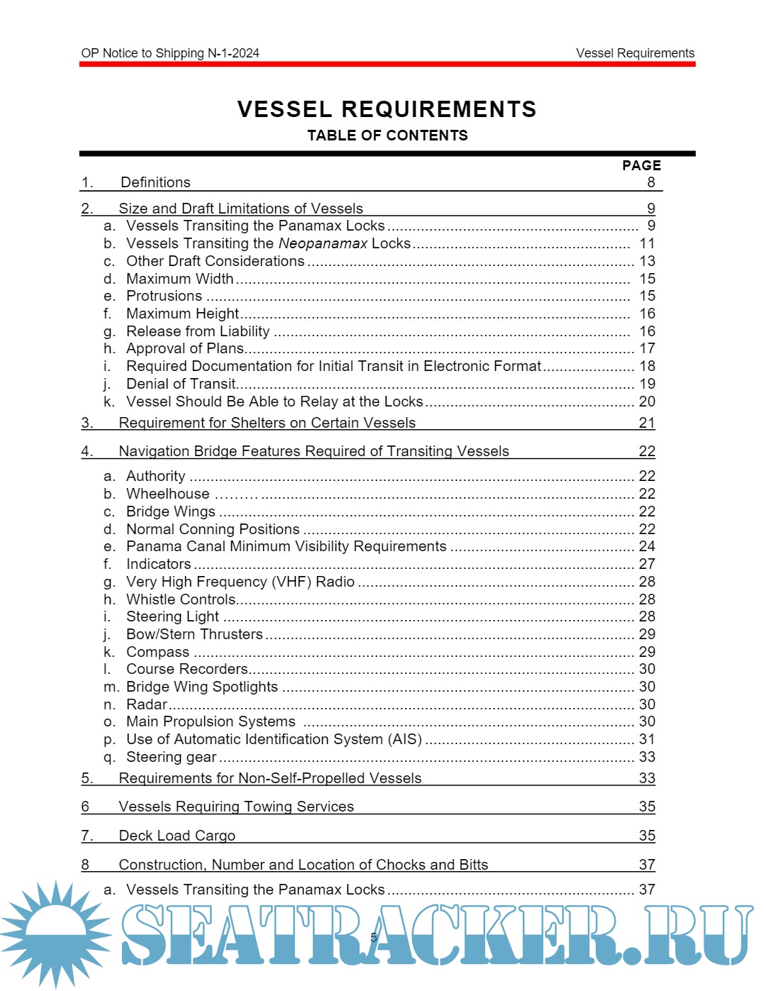 Panama Canal Vessel requirements OP notice to shipping 1 of 2024