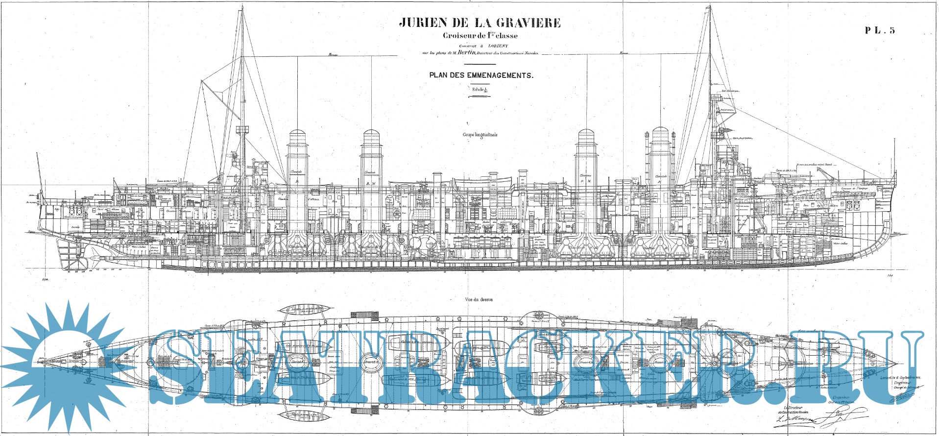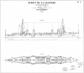 Архивные чертежи французского крейсеоа 1-го ранга JURIEN de la GRAVIERE 1899 год
