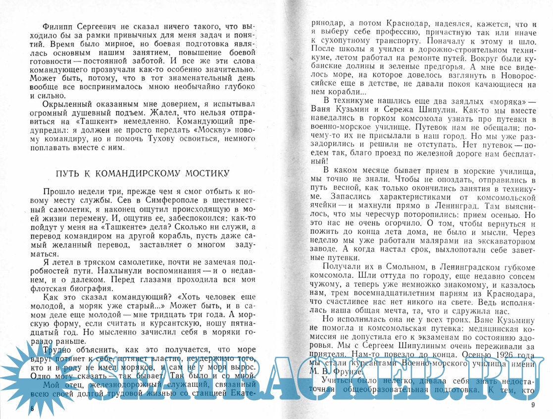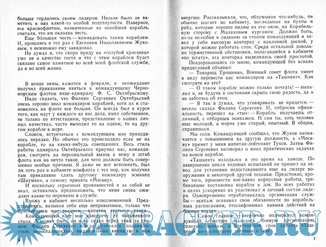 В его воспоминаниях рассказывается о боевых походах славного корабля, о героическом экипаже "Ташкента", подвиги которого навсегда вошли в историю Советского Военно-Морского Флота.