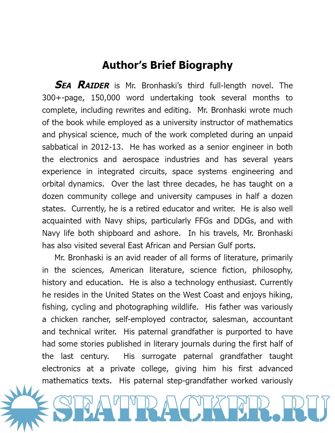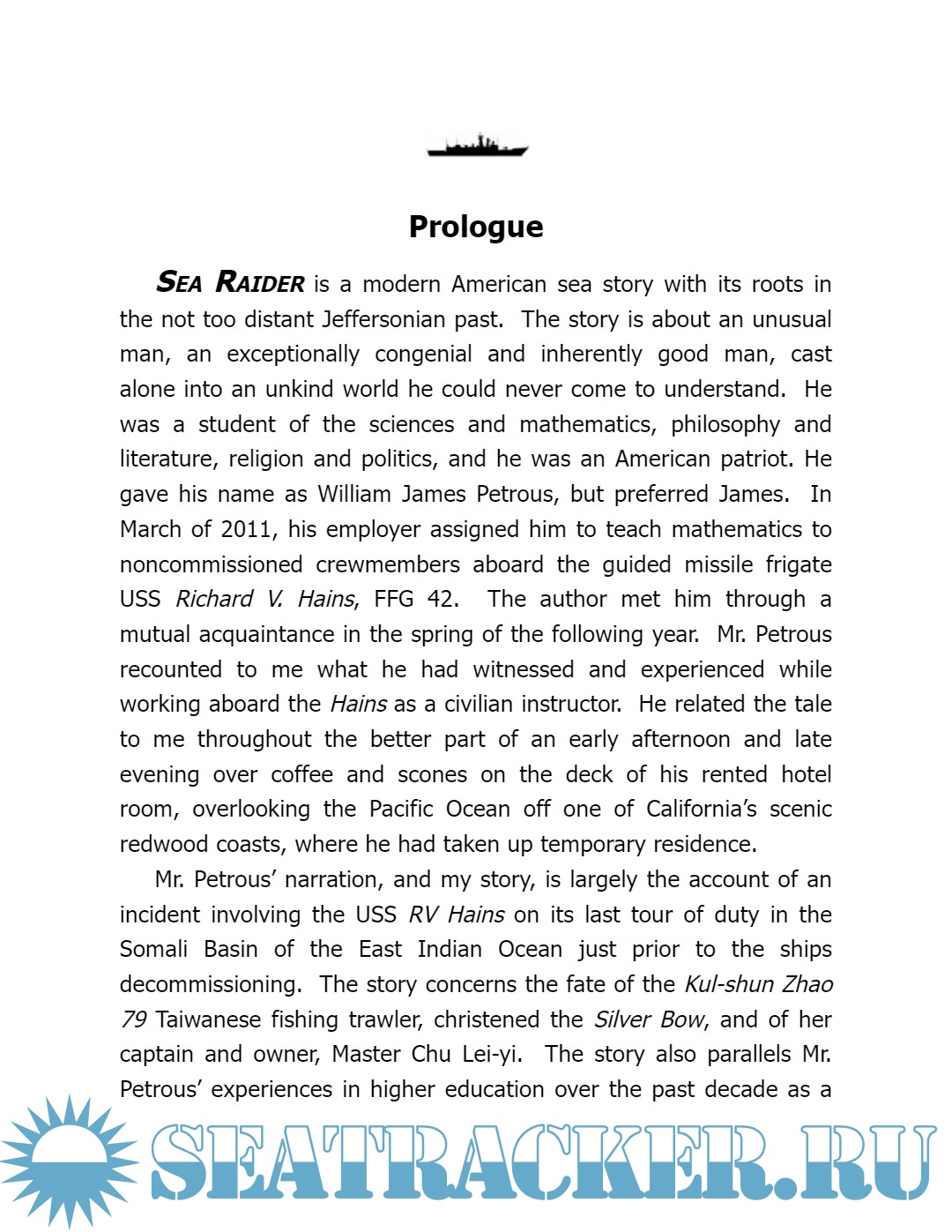 Year: 2016 Language: English Author: HR Bronhaski Genre: Fiction Edition: Kindle | 2nd Format: PDF Quality: eBook Pages count: 572 Description: Fictionalized account of the liberation and subsequent destruction of a pirated Taiwanese trawler by a US Navy frigate and the killing of the boat's captain during the action. Based on a real incident occurring in the Somali Basin of the West Indian Ocean in the Spring of 2011.