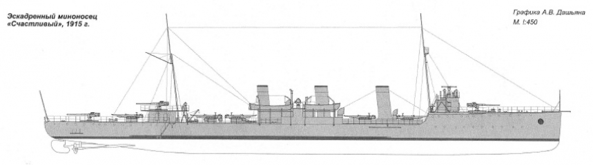 Одновременно с постройкой в Николаеве кораблей типа «Дерзкий» петербургскими заводами также для Черноморского флота было начато строительство серии эсминцев типа «Счастливый».
