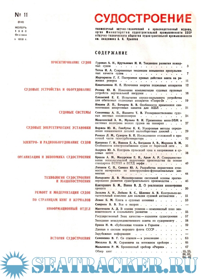 Год выпуска: 1980 Язык: Русский Автор: группа авторов Жанр: Периодическое издание (журнал) Издание: 1980-11 Формат: PDF Качество: Отсканированные страницы Количество страниц: 74 Описание: В журнале публикуются статьи ученых и специалистов на темы, связанные с проектированием, постройкой, ремонтом, модернизацией и утилизацией военных кораблей, гражданских судов. Регулярно выходят в свет работы, посвященные организации и технологии судостроительного производства, проектированию верфей и доков, новым судостроительным материалам. Большое внимание уделяется вопросам судовой энергетики и новым разработкам в области морской техники.