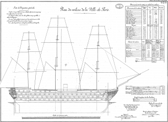 Чертежи французского парусного корабля 1-го ранга "Ville de Paris" 1850 год