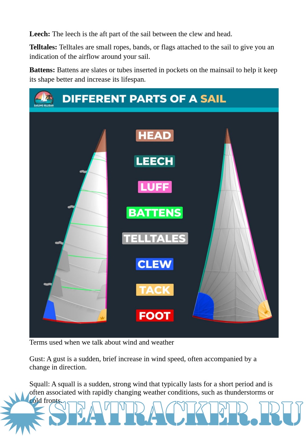 ◦ The different parts of a sail
