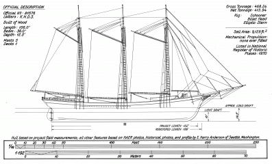 Чертежи и изображения американской трёхмачтовой шхуны "Wawona" 1897 год