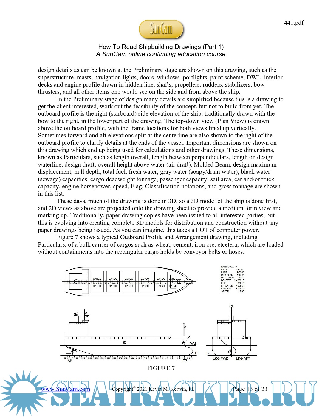 Year: 2021 Language: English Author: Kerwin K.M. Genre: Manual Publisher: Kevin M. Kerwin Format: PDF Quality: eBook Pages count: 23 Description: Shipbuilding drawings (or plans) are the detailed directions to building the ship. The types of these plans can be broken down into various groups to convey information pertinent to the design engineers and the various craft personnel that do the construction. Drawings, along with the calculations supporting them, are produced by either an outside design firm, the engineering department in the shipyard, or both. There are often many subcontractors who do design work in specific fields in addition to those personnel at the shipbuilder’s yard. This class will be concerned with how to read the drawings only; an educated skill which a surprising number of crafts people don’t possess.