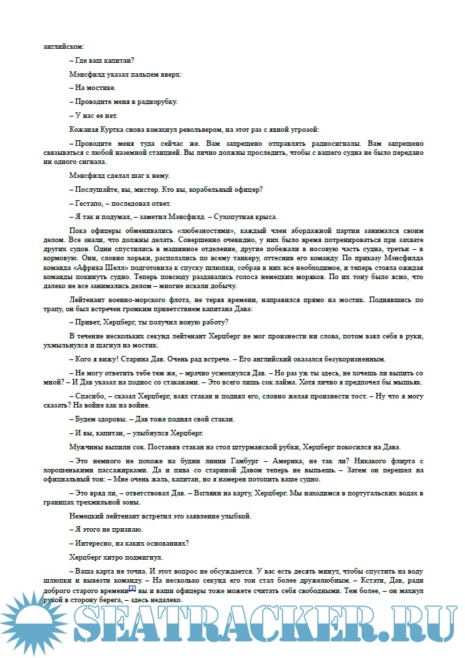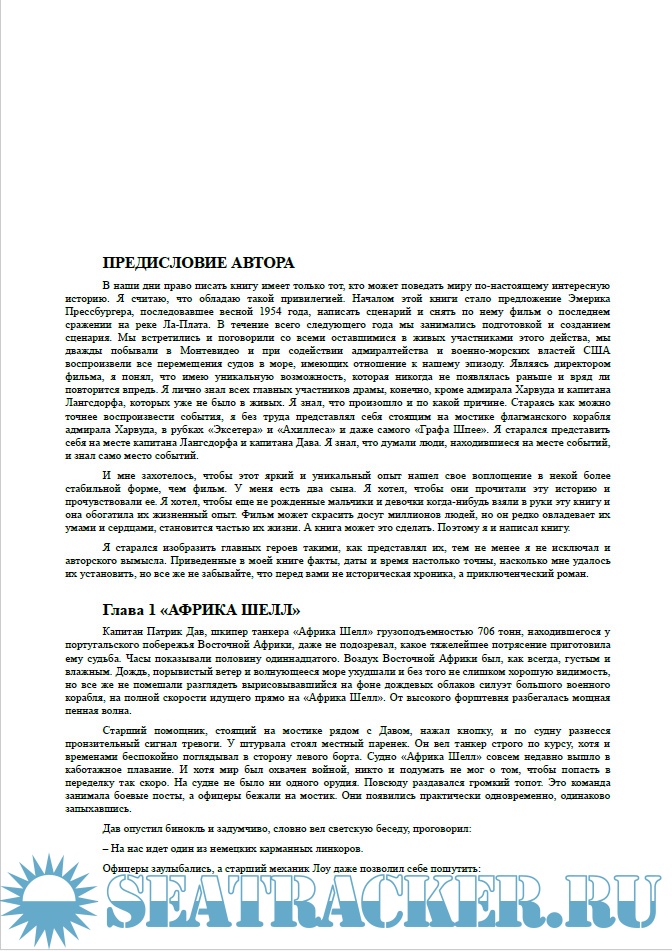 Описание: Автор ярко и увлекательно рассказывает о последнем походе немецкого рейдера - карманного линкора "Адмирал граф Шпее". Осенью 1939 года британское адмиралтейство отдало приказ о формировании восьми мощных поисковых групп, в состав которых входили четыре линкора, четыре авианосца, линейный крейсер, четырнадцать тяжелых и легких крейсеров для уничтожения грозного и неуловимого "Графа Шпее".