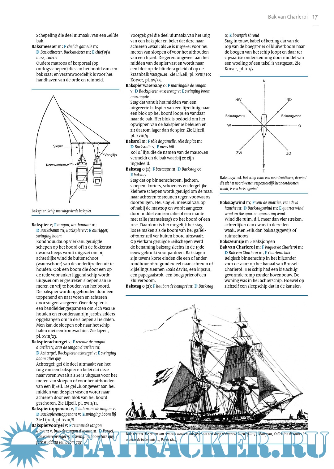 Year: 1985 Language: English, Dutch, French, German Author: van Beylen J. Genre: Dictionary Publisher: Rijksdienst voor het Cultureel Erfgoed Format: PDF Quality: eBook Pages count: 468 Description: Gespecialiseerde encyclopedie met ca. 7000 vaktermen uit de scheepvaart in het algemeen en de zeilvaart in het bijzonder. Van Aak, Admiraal en Ankerkussen tot Grootbovenbramlijzeil, Kielhalen, Logboek en Zwolse kaag. Overzichtelijk afgedrukt in drie kolomm Specialized encyclopedia with approx. 7000 technical terms from shipping in general and sailing in particular. From Aak, Admiral and Anchor cushion to Grootbovenbramlijzeil, Kielhalen, Logboek and Zwolse kaag. Clearly printed in three columns