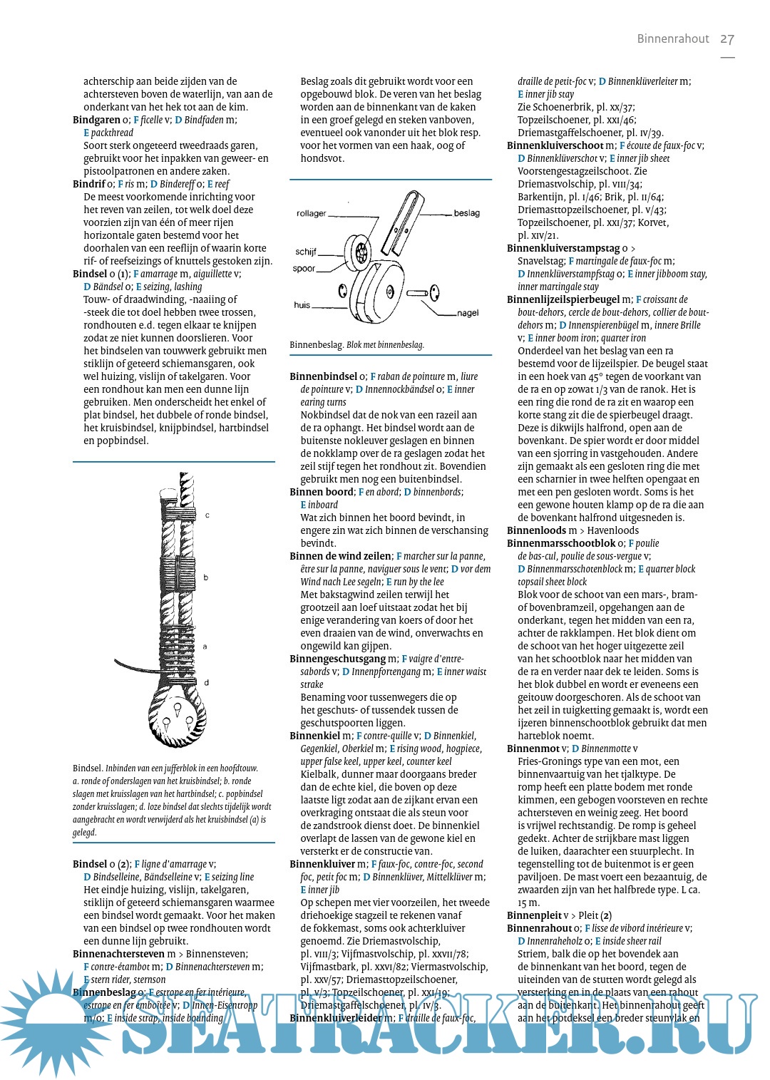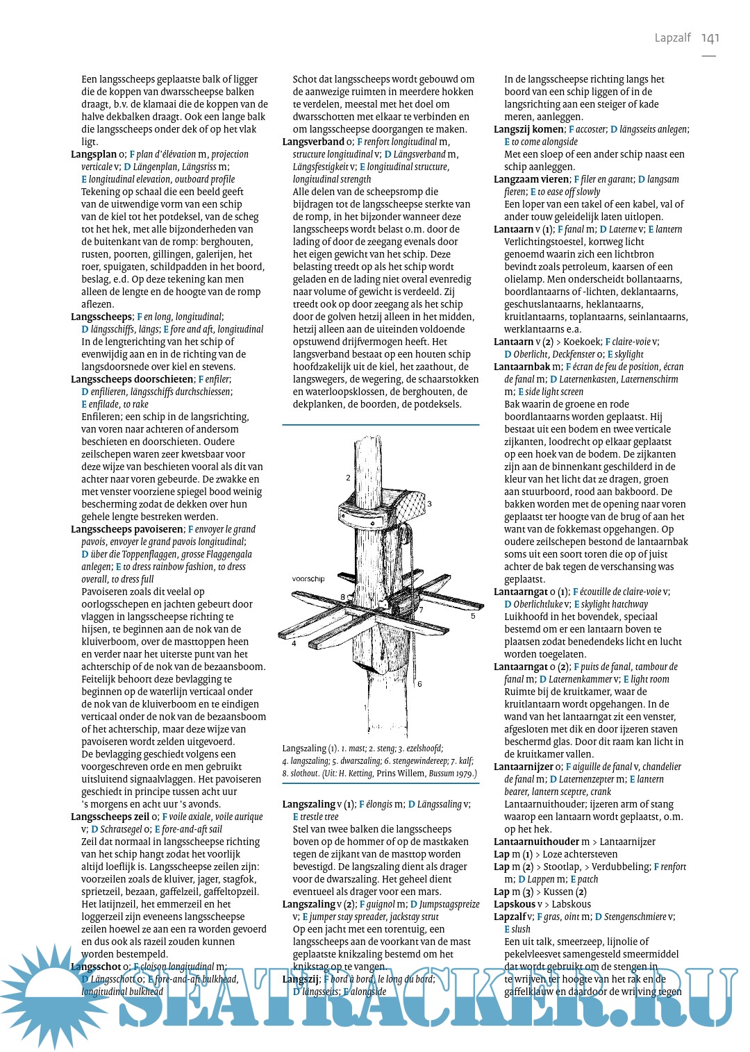 Description: Gespecialiseerde encyclopedie met ca. 7000 vaktermen uit de scheepvaart in het algemeen en de zeilvaart in het bijzonder. Van Aak, Admiraal en Ankerkussen tot Grootbovenbramlijzeil, Kielhalen, Logboek en Zwolse kaag. Overzichtelijk afgedrukt in drie kolomm