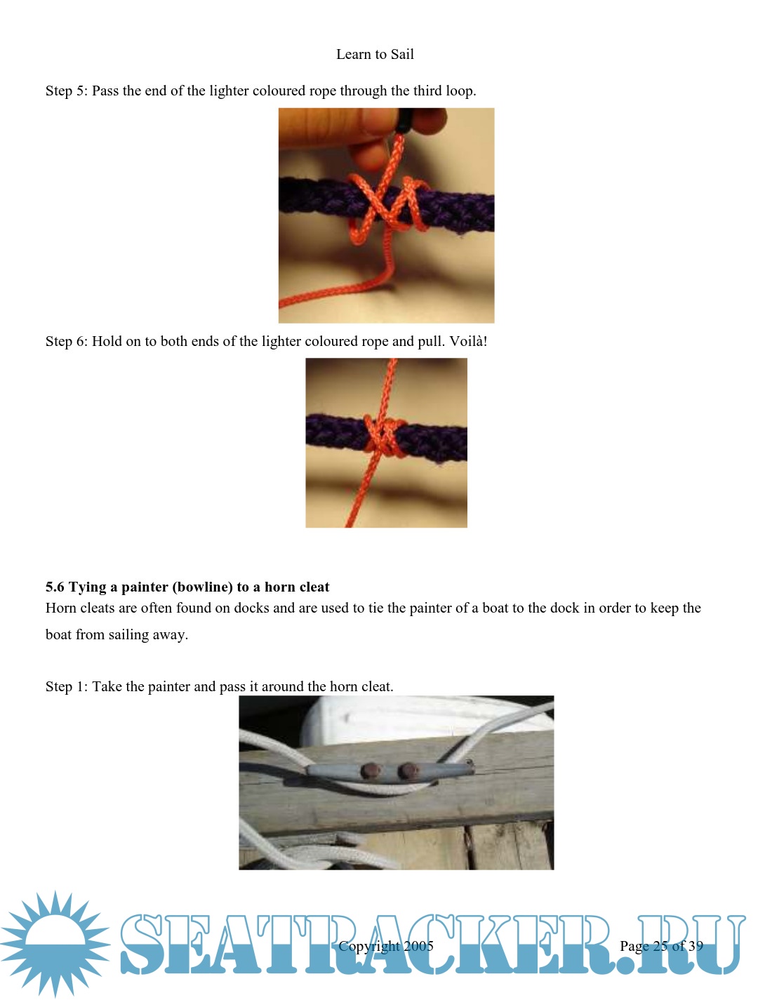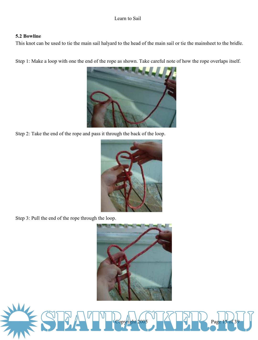 Year: 2010 Language: English Author: Boulva K, Roux-groleau J.- P. Genre: Manual Publisher: AQVA Format: PDF Quality: eBook Pages count: 42 Description: Welcome to the Martin 16 Learn to Sail theory! This booklet is designed to give you the basic tools you need to feel knowledgeable and comfortable as you explore the wonderful sport of sailing. To get started you will learn important tips on clothing and safety, as well as the parts of the boat and how to rig. You will also learn how to make knots to secure your boat’s ropes. Most importantly, you will learn how to navigate your boat by learning the different points of sail, how to change direction and the right of way rules. Lastly, a good sailor also needs to be aware of his surroundings and know how to read the weather. While the basics of sailing are applicable to any boat, this book takes into special consideration one of the most common accessible Learnto-Sail boats, the popular Martin 16. So what do you say? Let’s learn some fun.