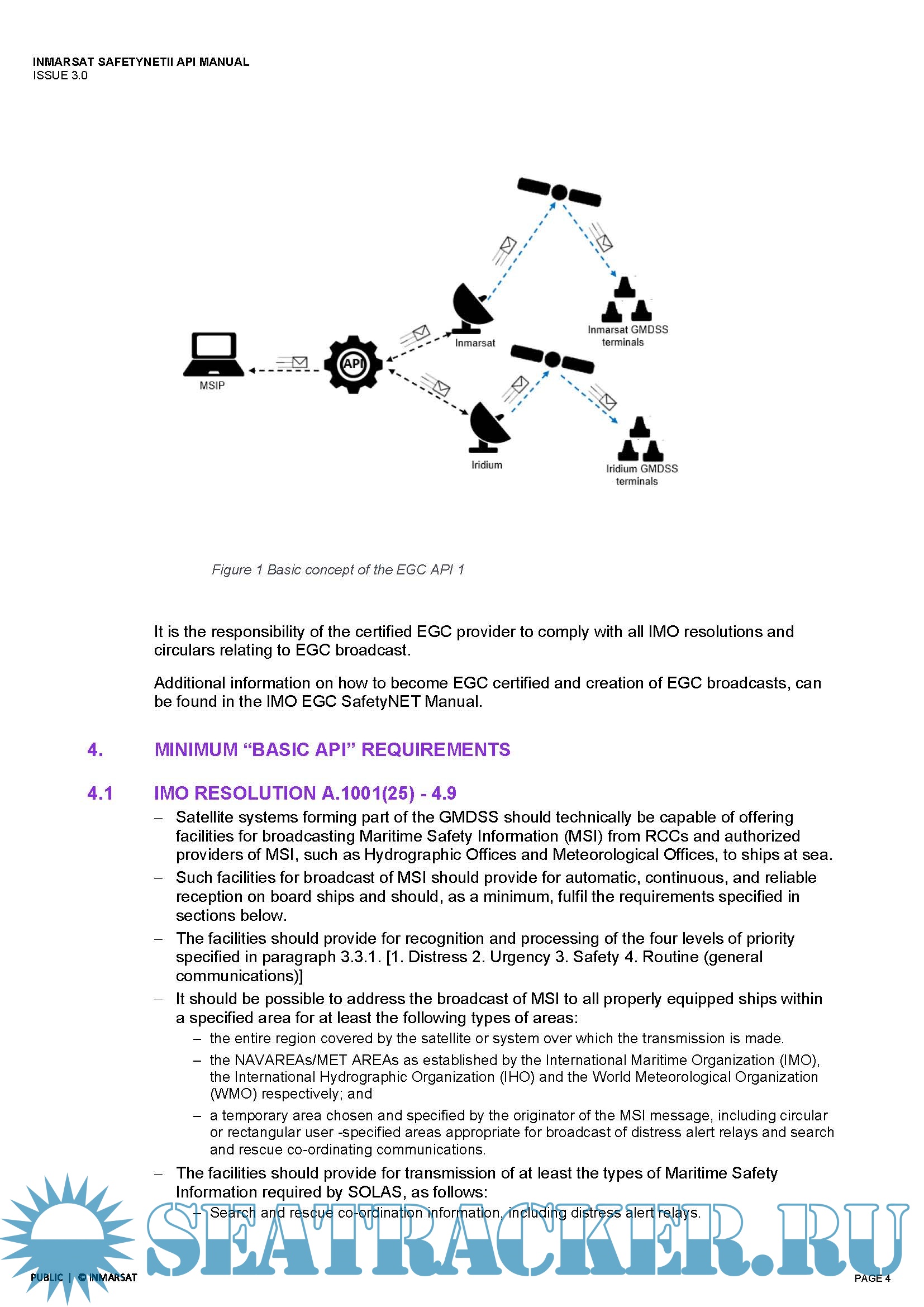 Description: The purpose of this document is to provide information and guidance on how to access and make use of the Inmarsat EGC API within the test and live environments. Giving instruction and examples of how to create and make use of different API codes, or syntax, to make the most of the system. Whilst this manual covers a range of methods and formats, it is not comprehensive and there are other API development tools available. For more specific details or questions, please contact your IT, API developer or Inmarsat Maritime Safety Team.