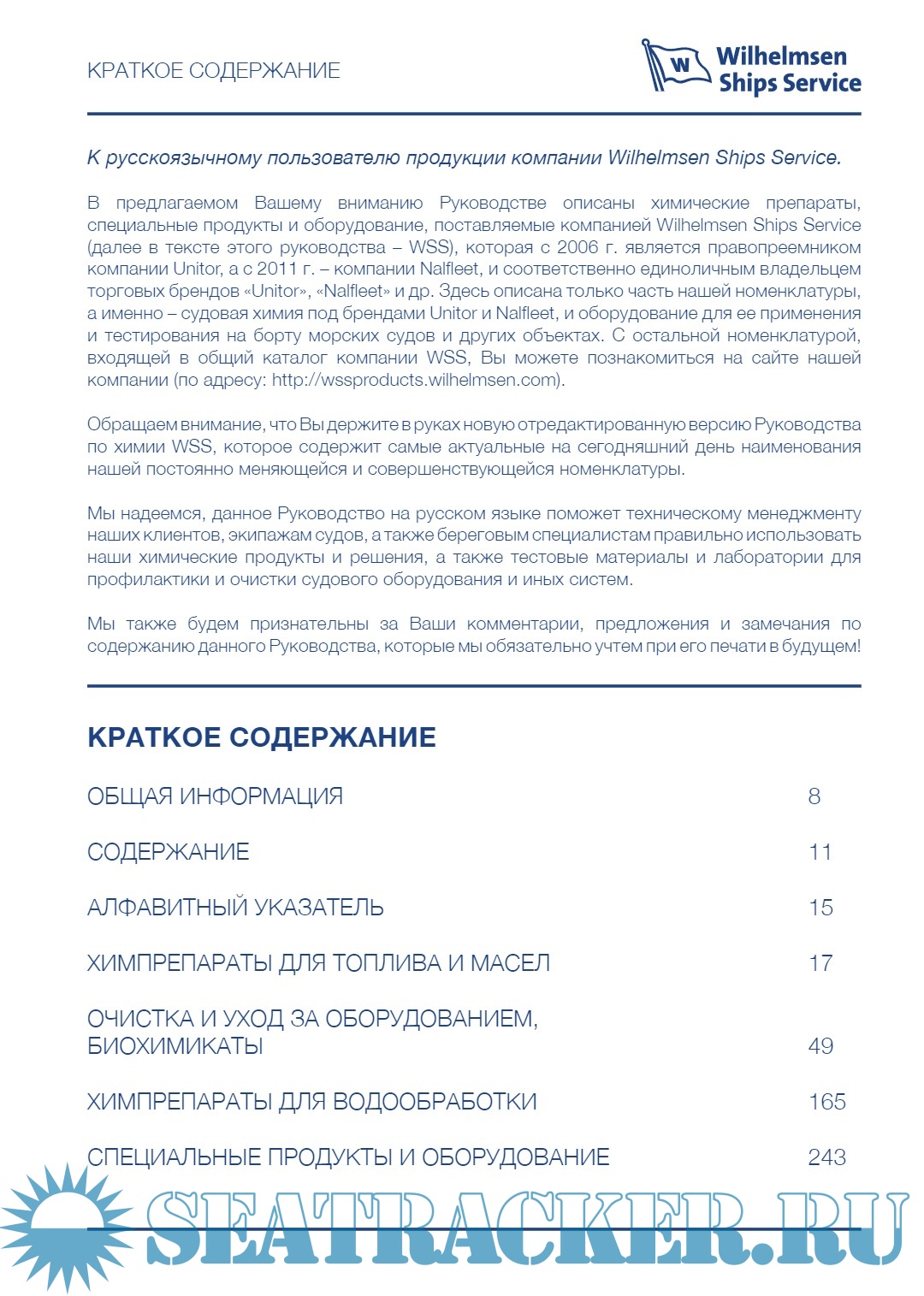 Год выпуска: 2011 Язык: Русский Автор: Wilhelmsen Ships Service Жанр: Руководство Издательство: Wilhelmsen Ships Service Формат: PDF Качество: Распознанный текст с ошибками (OCR) Количество страниц: 346 Описание: В предлагаемом Вашему вниманию Руководстве описаны химические препараты, специальные продукты и оборудование, поставляемые компанией Wilhelmsen Ships Service (далее в тексте этого руководства – WSS), которая с 2006 г. является правопреемником компании Unitor, а с 2011 г. – компании Nalfleet, и соответственно единоличным владельцем торговых брендов «Unitor», «Nalfleet» и др. Здесь описана только часть нашей номенклатуры, а именно – судовая химия под брендами Unitor и Nalfleet, и оборудование для ее применения и тестирования на борту морских судов и других объектах. С остальной номенклатурой, входящей в общий каталог компании WSS, Вы можете познакомиться на сайте нашей компании (по адресу: wssproducts.wilhelmsen.com). Обращаем внимание, что Вы держите в руках новую отредактированную версию Руководства по химии WSS, которое содержит самые актуальные на сегодняшний день наименования нашей постоянно меняющейся и совершенствующейся номенклатуры. Мы надеемся, данное Руководство на русском языке поможет техническому менеджменту наших клиентов, экипажам судов, а также береговым специалистам правильно использовать наши химические продукты и решения, а также тестовые материалы и лаборатории для профилактики и очистки судового оборудования и иных систем. Мы также будем признательны за Ваши комментарии, предложения и замечания по содержанию данного Руководства, которые мы обязательно учтем при его печати в будущем!