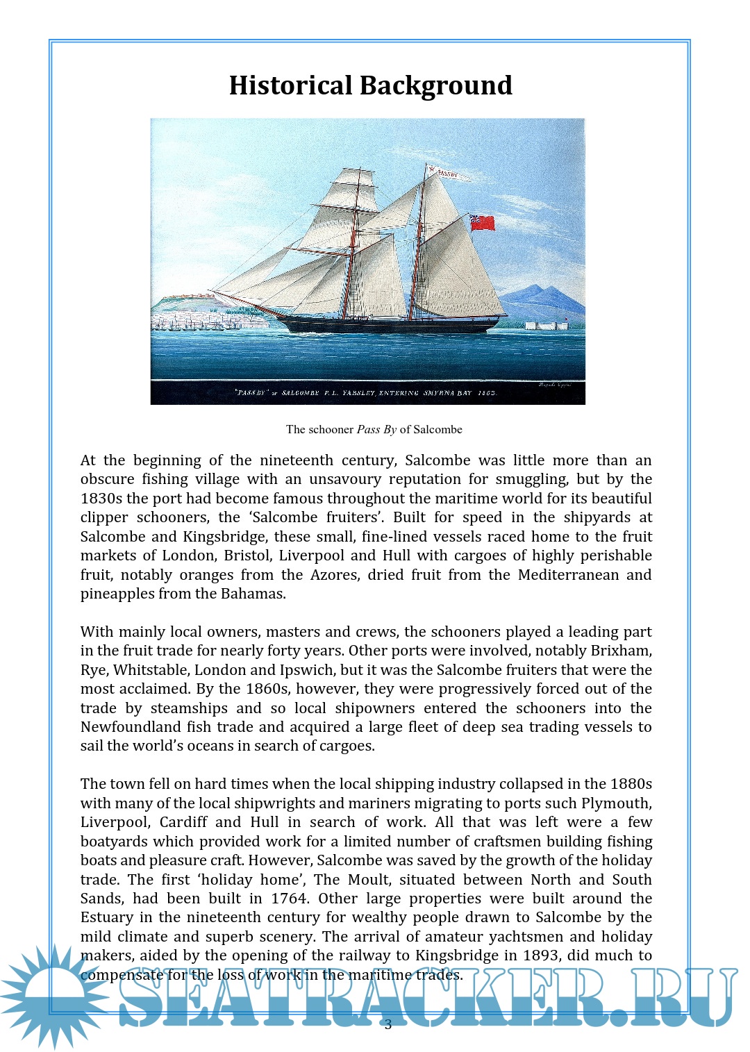 Description: At the beginning of the nineteenth century, Salcombe was little more than an obscure fishing village with an unsavoury reputation for smuggling, but by the 1830s the port had become famous throughout the maritime world for its beautiful clipper schooners, the ‘Salcombe fruiters’. Built for speed in the shipyards at Salcombe and Kingsbridge, these small, fine-lined vessels raced home to the fruit markets of London, Bristol, Liverpool and Hull with cargoes of highly perishable fruit, notably oranges from the Azores, dried fruit from the Mediterranean and pineapples from the Bahamas.