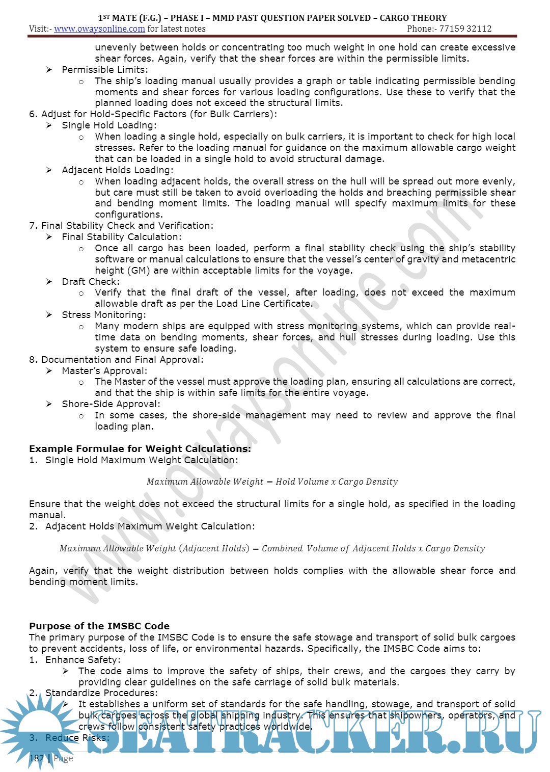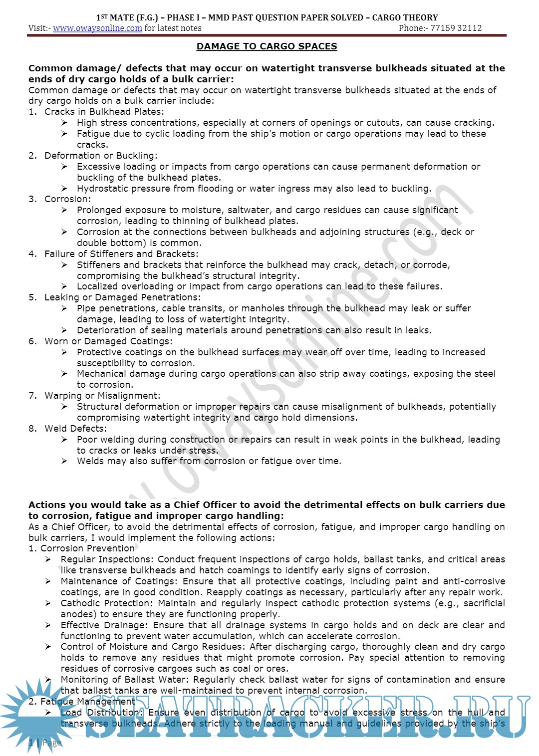 Phase I Cargo Work - Solved Theory (2020~2012) from Past Question Papers of Mercantile Marine…