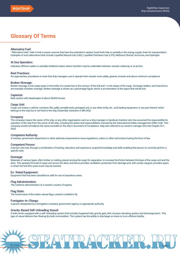 RightShip Inspection Ship Questionnaire (RISQ) - RightShip [2022, PDF]