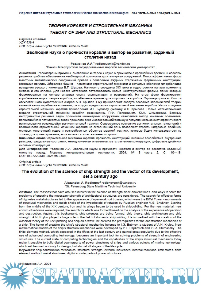 Морские интеллектуальные технологии 2024 № 3 часть 2