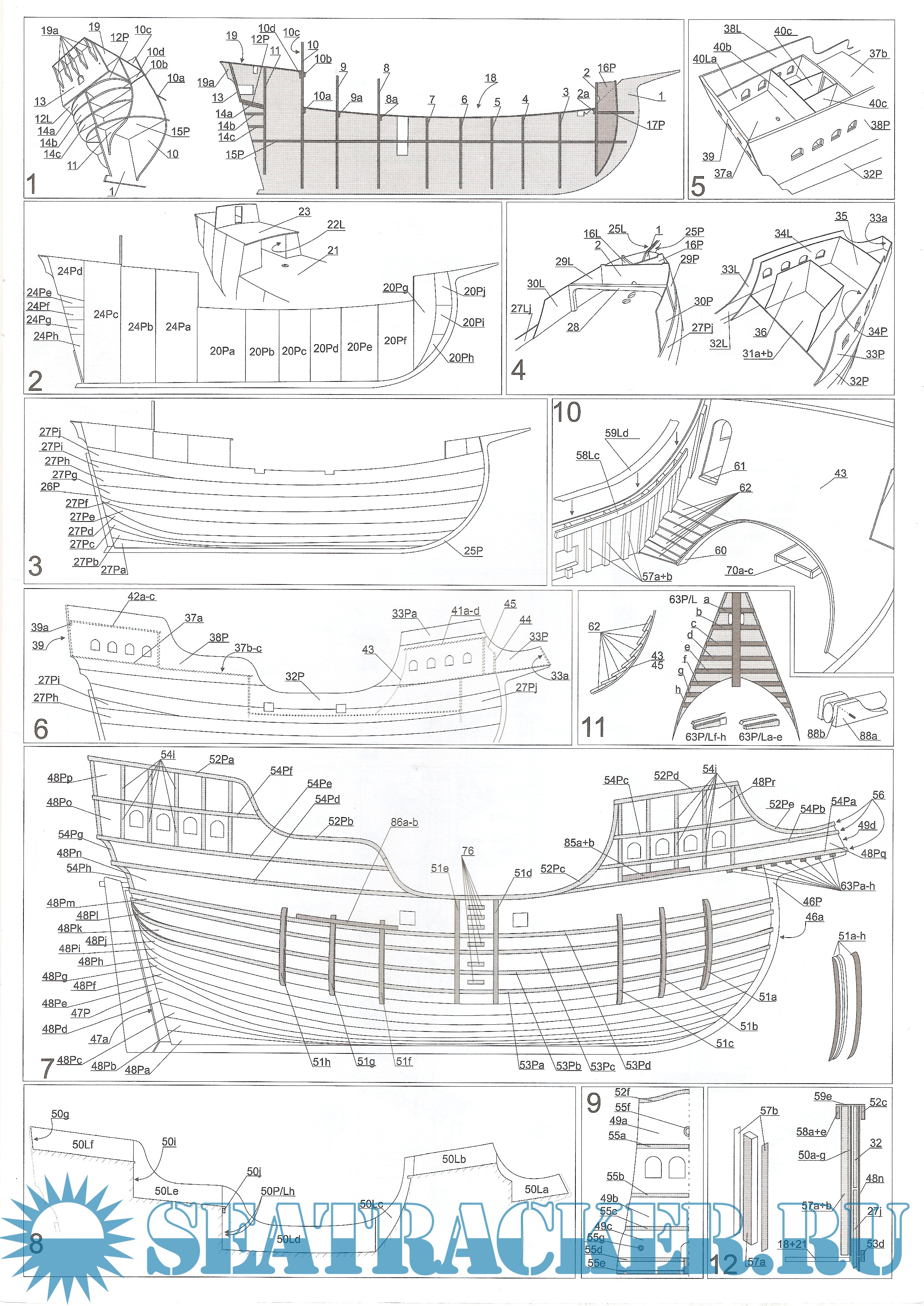 25 листов цветных выкроек и инструкций для изготовления бумажной модели парусного судна Васко да Гама "Sao Gabriel" 1497 год в масштабе 1:100
