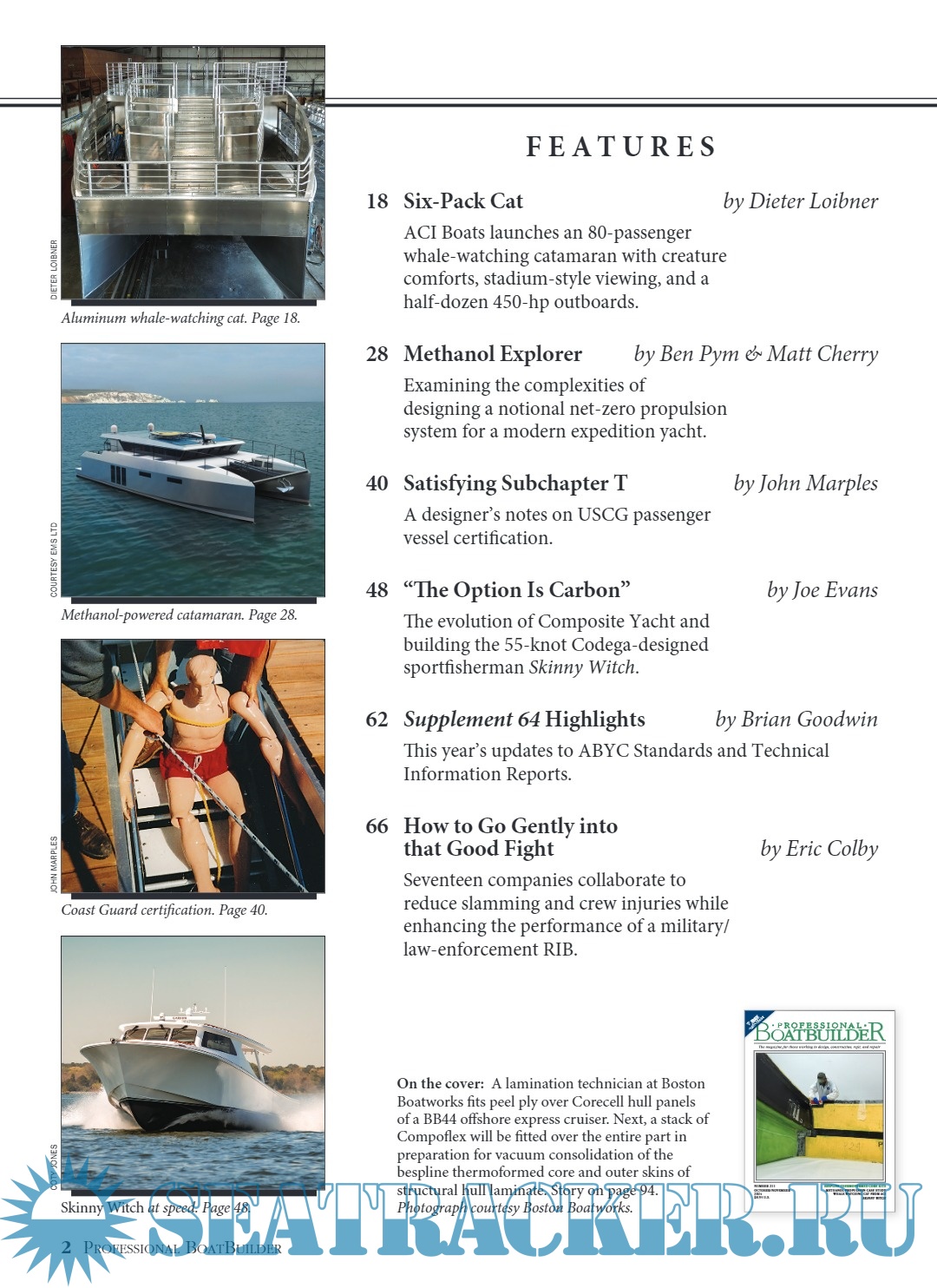 Description: Professional BoatBuilder magazine is written and edited for boatbuilders, repairers, designers, and surveyors.Published six times a year, by WoodenBoat Publications, Inc., it focuses on materials, design, and construction techniques and repair solutions chosen by marine professionals.Regular technical articles provide detailed, real-world examples to improve the efficiency and quality of their work. Professional BoatBuilder has an audited circulation of 24,000 readers, worldwide.