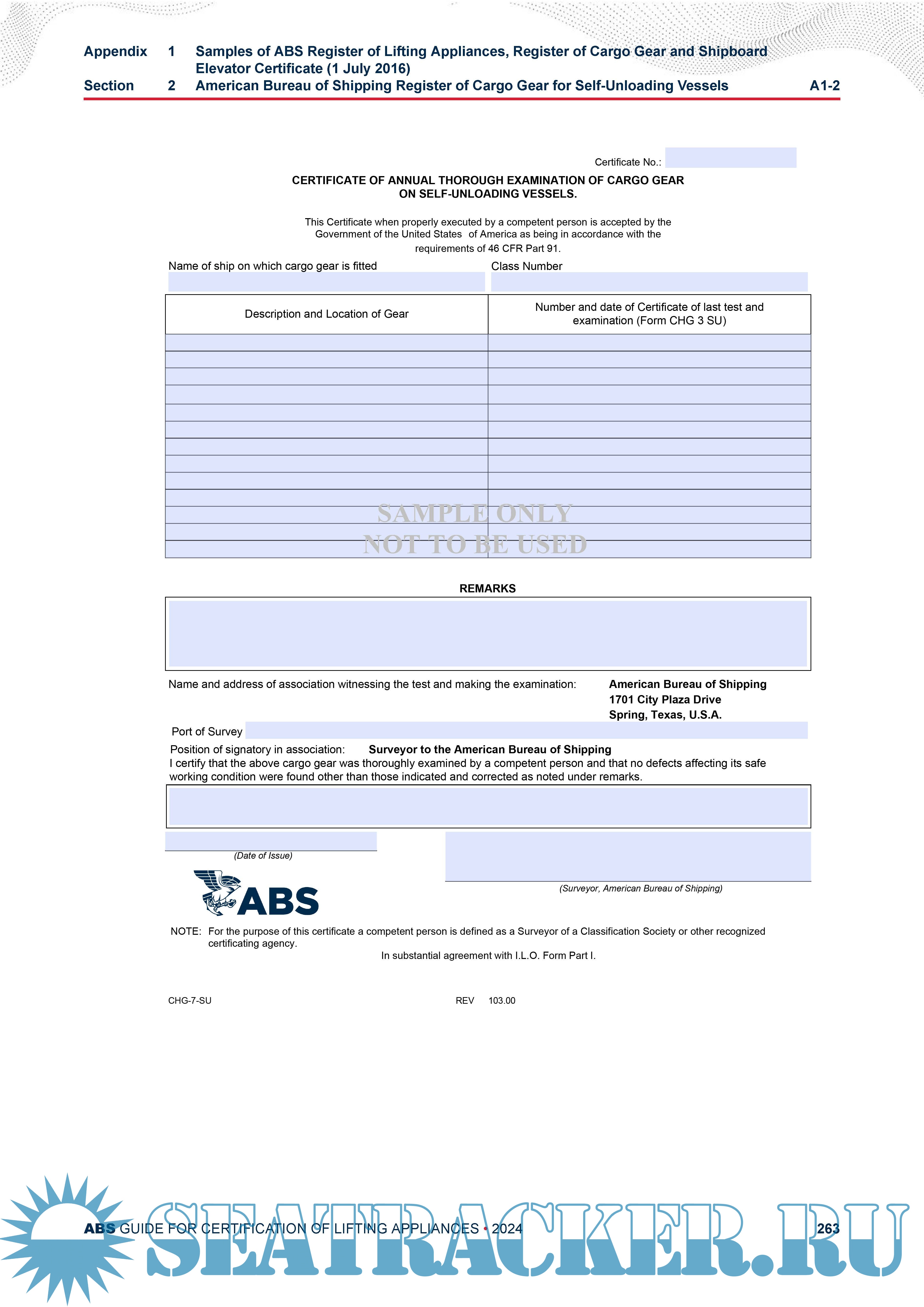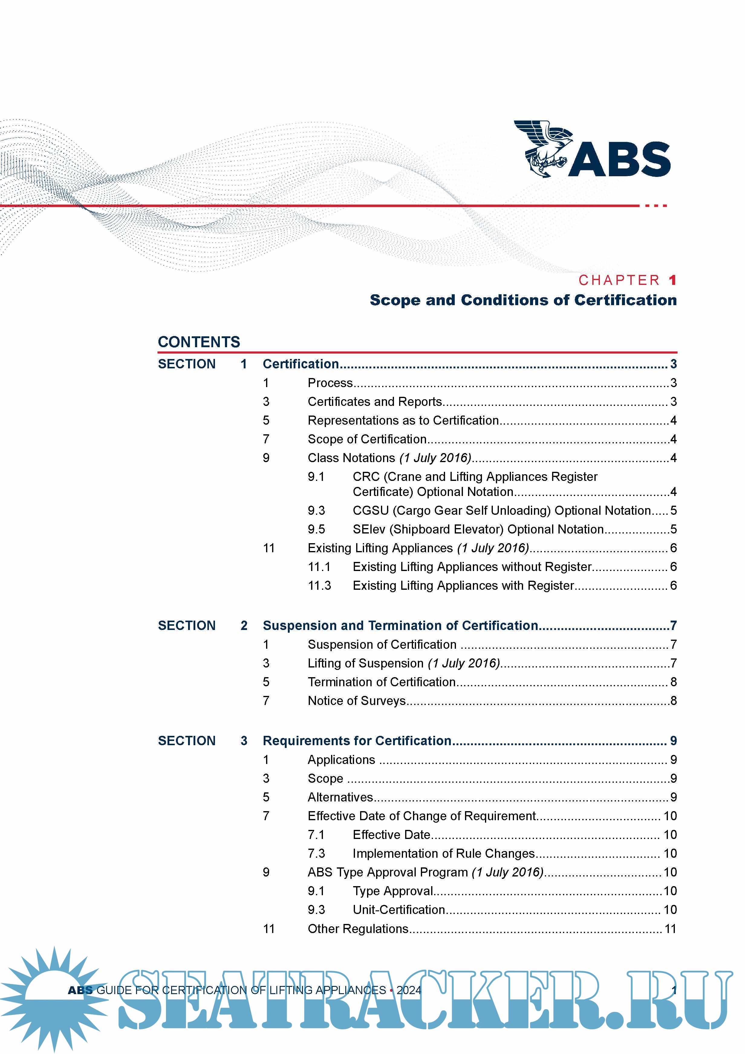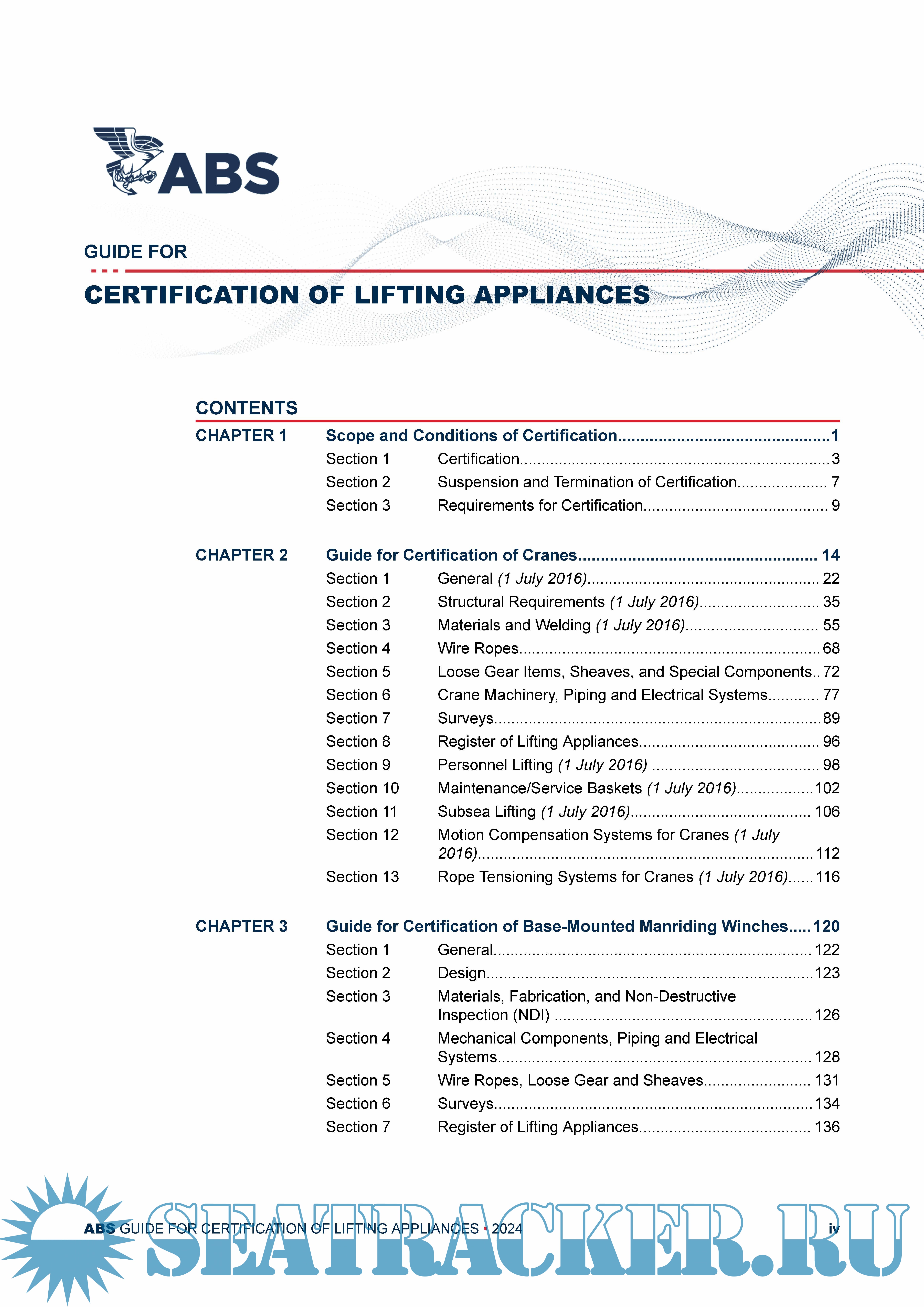 and Guides such as Guide for Certification of Cranes, Guide for Self-Unloading Cargo Gear on Great