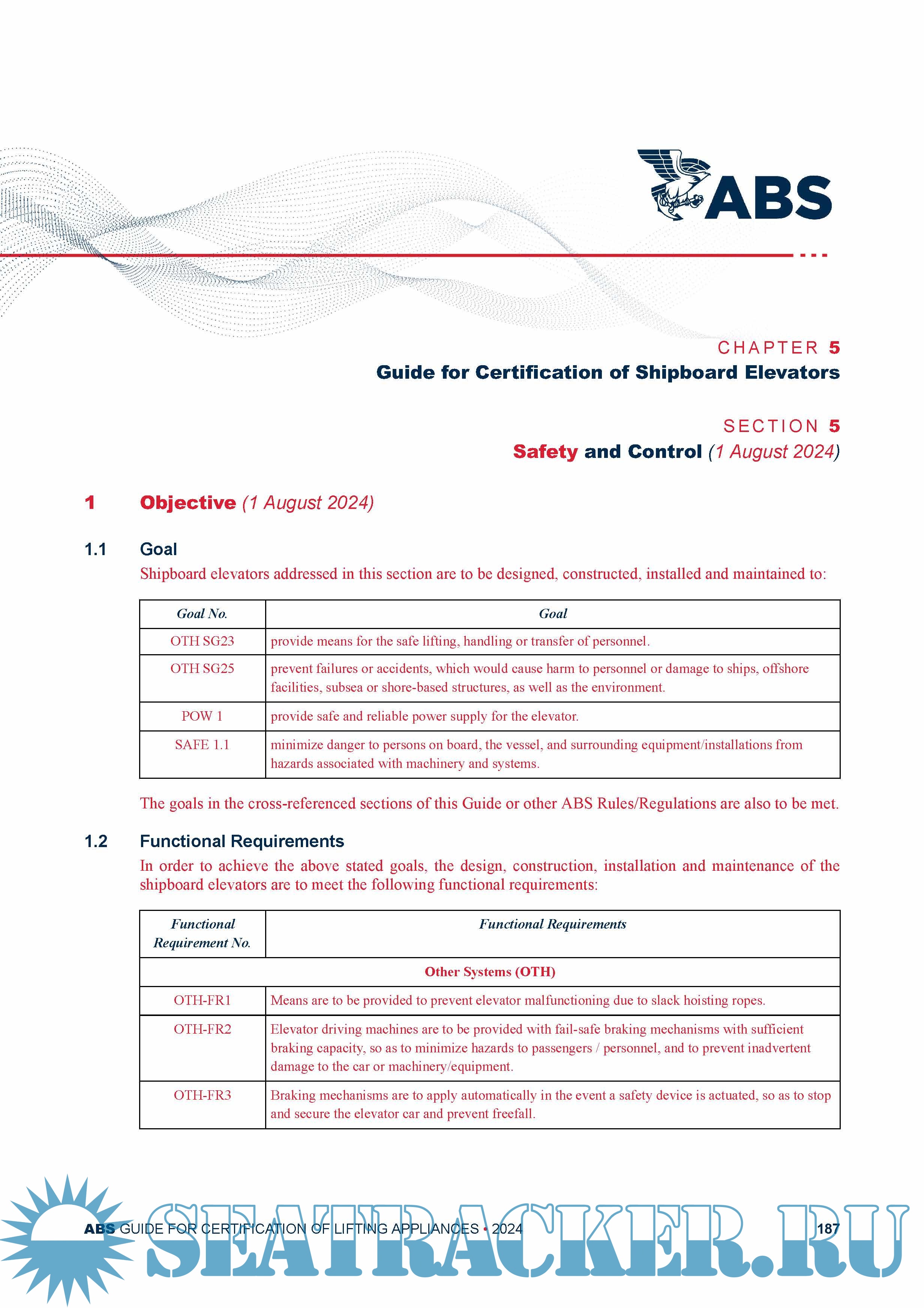 Year: 2024 Language: English Author: American Bureau of Shipping (ABS) Genre: Guide Edition: August 2024 Format: PDF Quality: eBook Pages count: 273 Description: The requirements in this Guide were first developed in 2006 consolidating requirements from ABS Rules and Guides such as Guide for Certification of Cranes, Guide for Self-Unloading Cargo Gear on Great Lakes, Guide for Certification of Cargo Gear on Merchant Vessels, Guide for Certification of Elevators and Guide for Certification of Stern, Bow and Sideport Ramps and Moveable Platforms (Decks). The Guide has since been updated in 2007, 2014, 2015, 2017, 2018 and 2019. The August 2024 edition incorporates the Goal Based Standard framework in this Guide, and is based on the philosophy outlined under the International Maritime Organization (IMO) circular Generic Guidelines for Developing IMO Goal-Based Standards (MSC.Circ.1394). Goal Based Standards offer a path for class approval for alternative and novel concepts, which may not be addressed by existing prescriptive requirements. As Goal Based Standards do not dictate specific technical solutions, they are better suited to accommodate future technological developments.