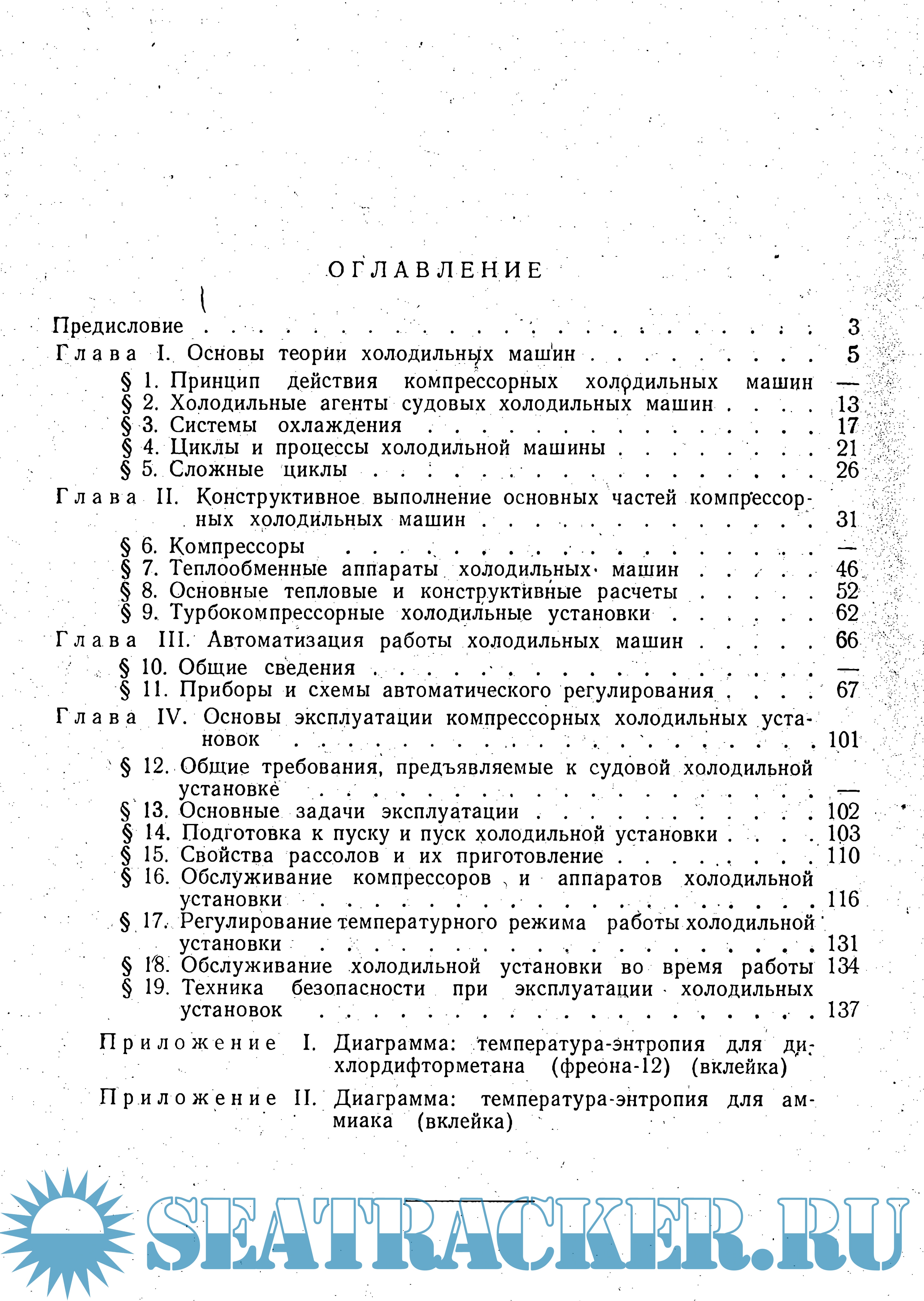 Книга предназначена для машинных команд судов и работников судоремонтных предприятий, связанных с эксплуатацией . и ремонтом холодильных установок, а также может служить пособием для слушателей курсов усовершенствования командного состава морского флота.