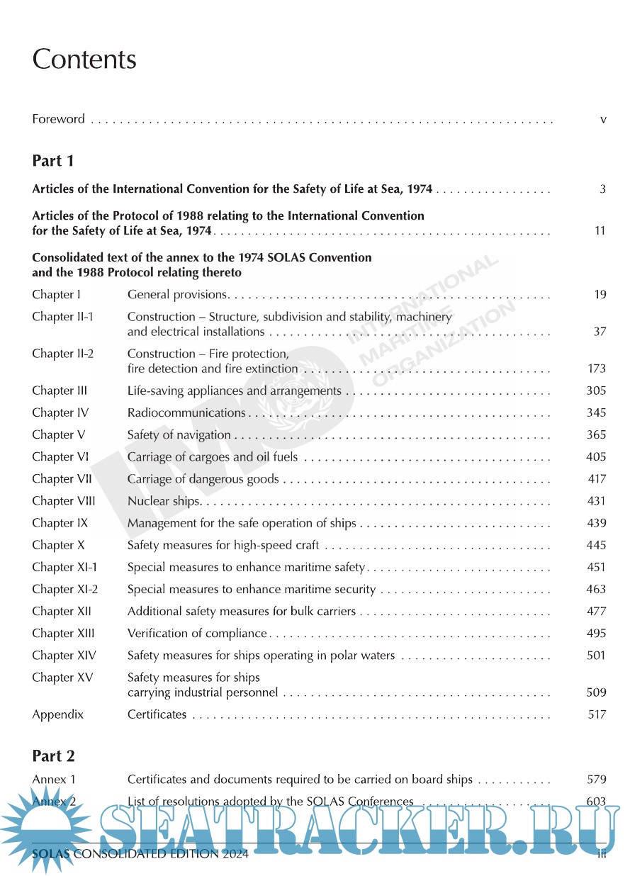 This edition of the publication presents a consolidated text of the Convention, its Protocol of 1988 and all amendments that have entered into force on or before 1 July 2024. Additionally, this edition includes the unified interpretations of SOLAS regulations approved by the Maritime Safety Committee.