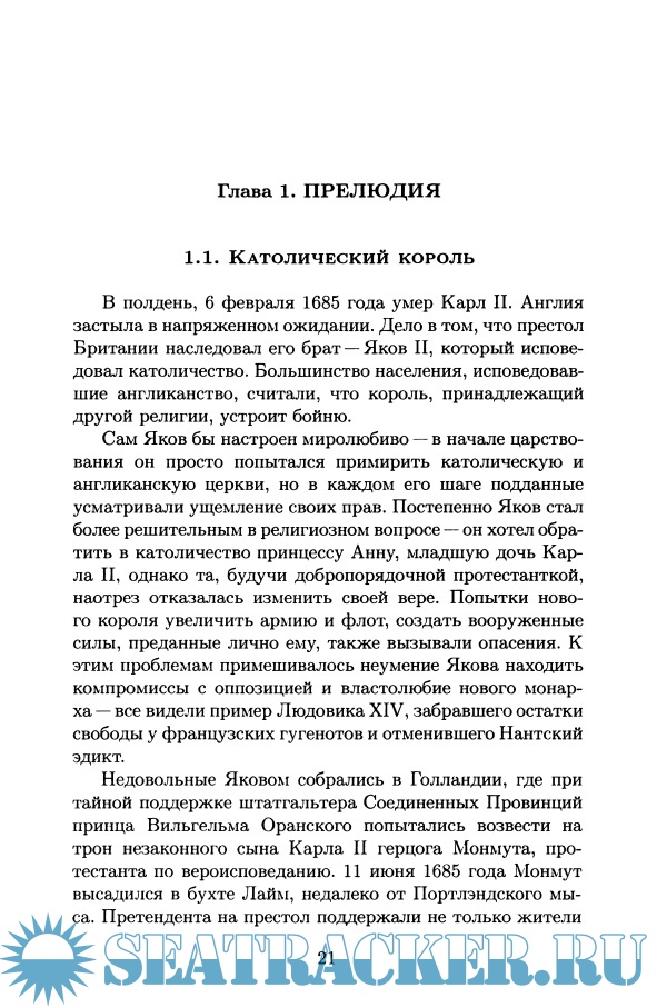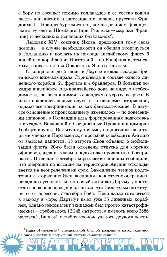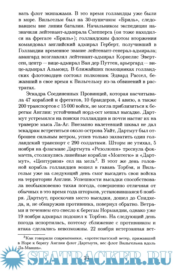 Подробно изложены сведения о важнейших морских сражениях эпохи парусного флота, о роли политики ведущих европейских держав в развитии тактики и стратегии военно-морского флота, о крупнейших флотоводцах Франции, Голландии и Англии конца XVII века.