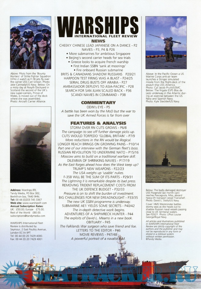 Year: 2018 Language: English Author: Iain Ballantyne (Editor) Genre: Periodical publication Edition: 2018-03 Format: PDF Quality: eBook Pages count: 44 Description: Warships IFR puts the spotlight on the latest developments in the world’s navies. It covers current defence issues and has comments by leading analysts. The magazine regularly includes features on the Royal Navy and the US Navy in addition to incorporating news and features on all other navies across the globe. Warships IFR frequently carries in-depth articles on naval heritage.WARSHIPS International Fleet Review is published 12 times a year by Tandy Media Ltd who also publish Shipping Today & Yesterday (which provides news and features from the world of merchant shipping).