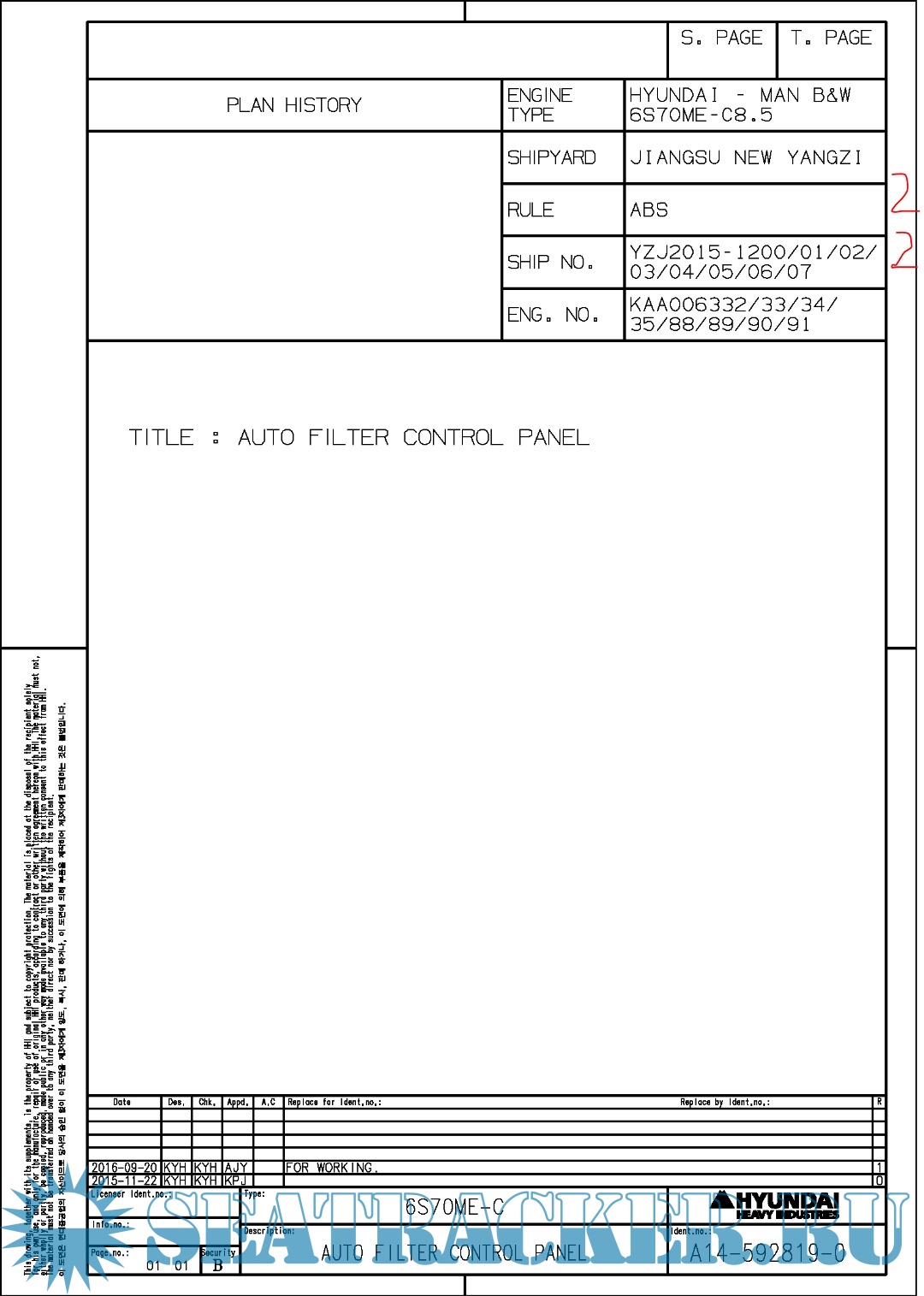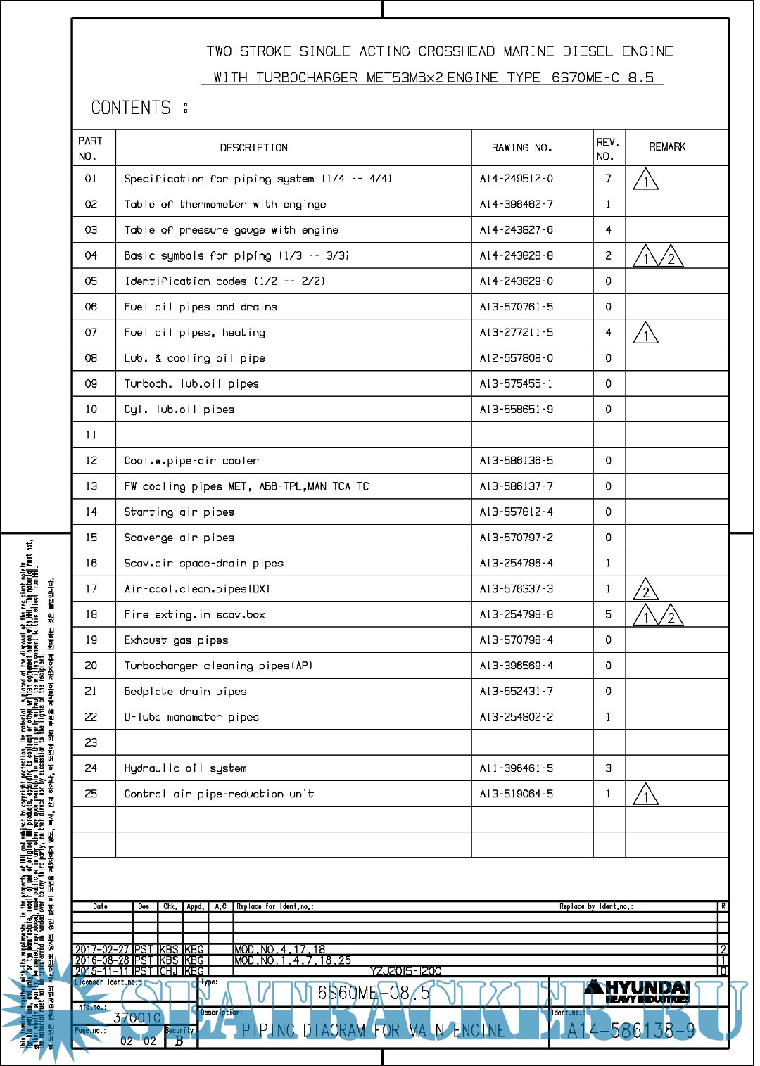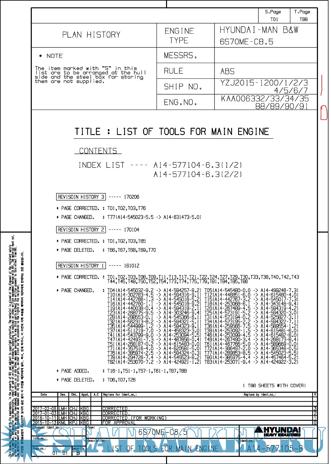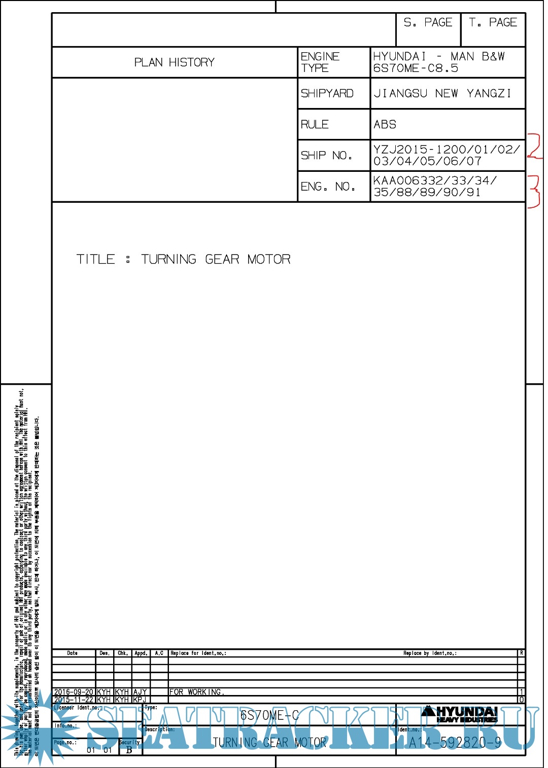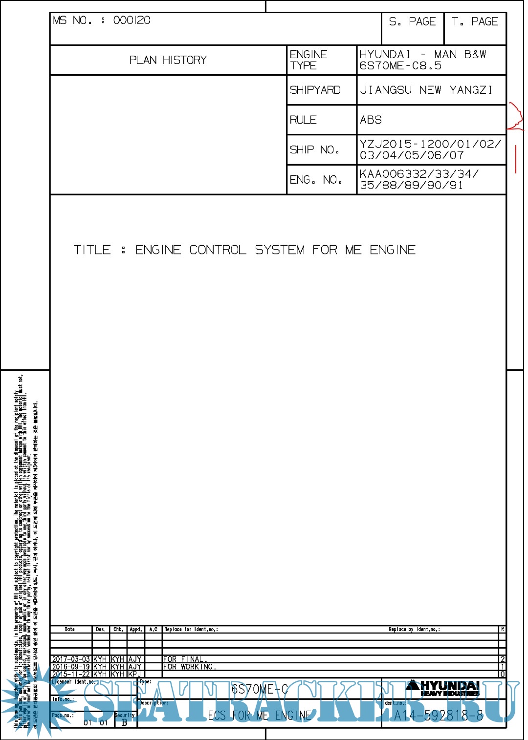 Description: Final drawings for Main Engine Hundai MAN B&W 6S70ME-C8.5.