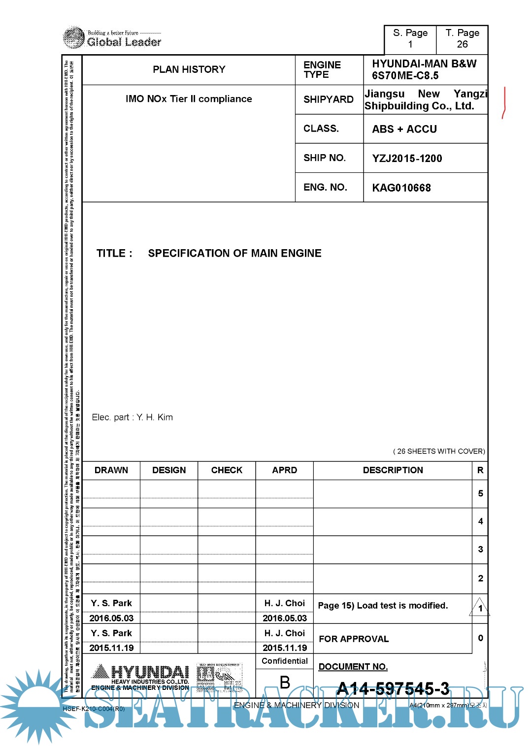 Hundai MAN B&W 6S70ME-C8.5 Final drawings for Main Engine