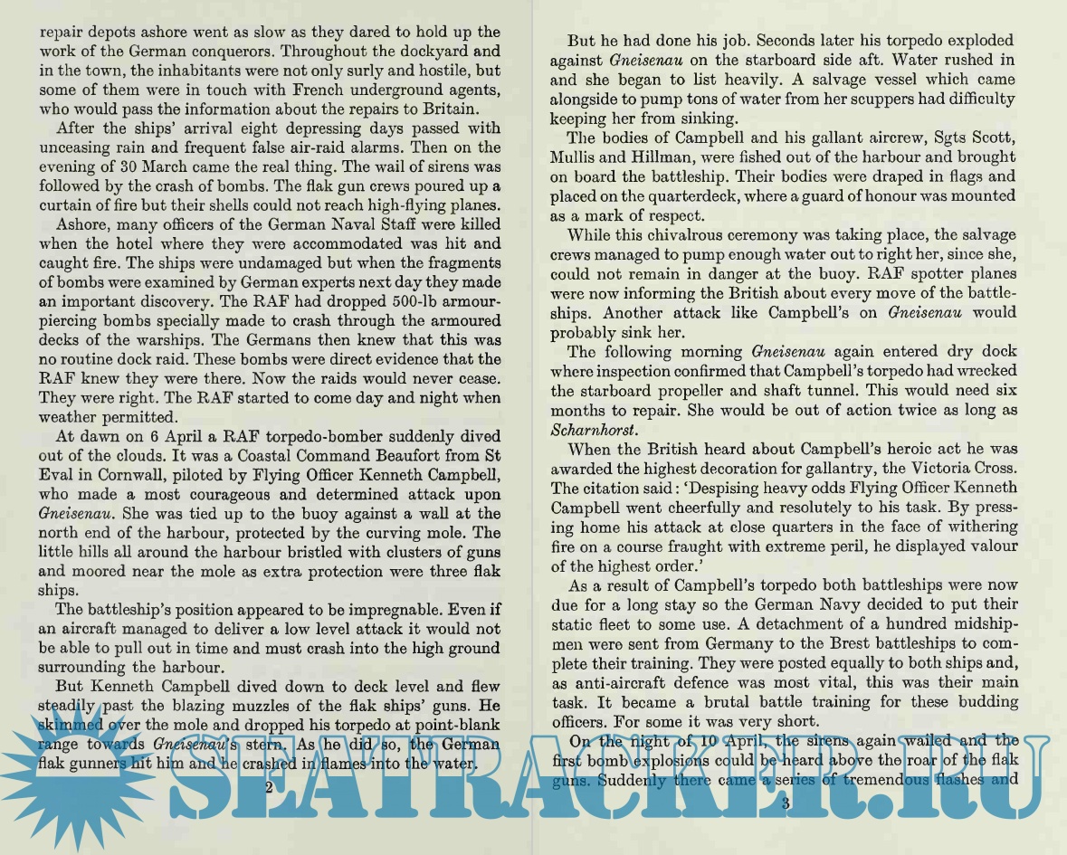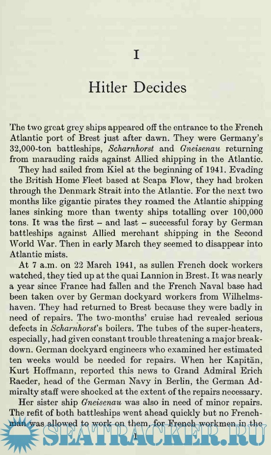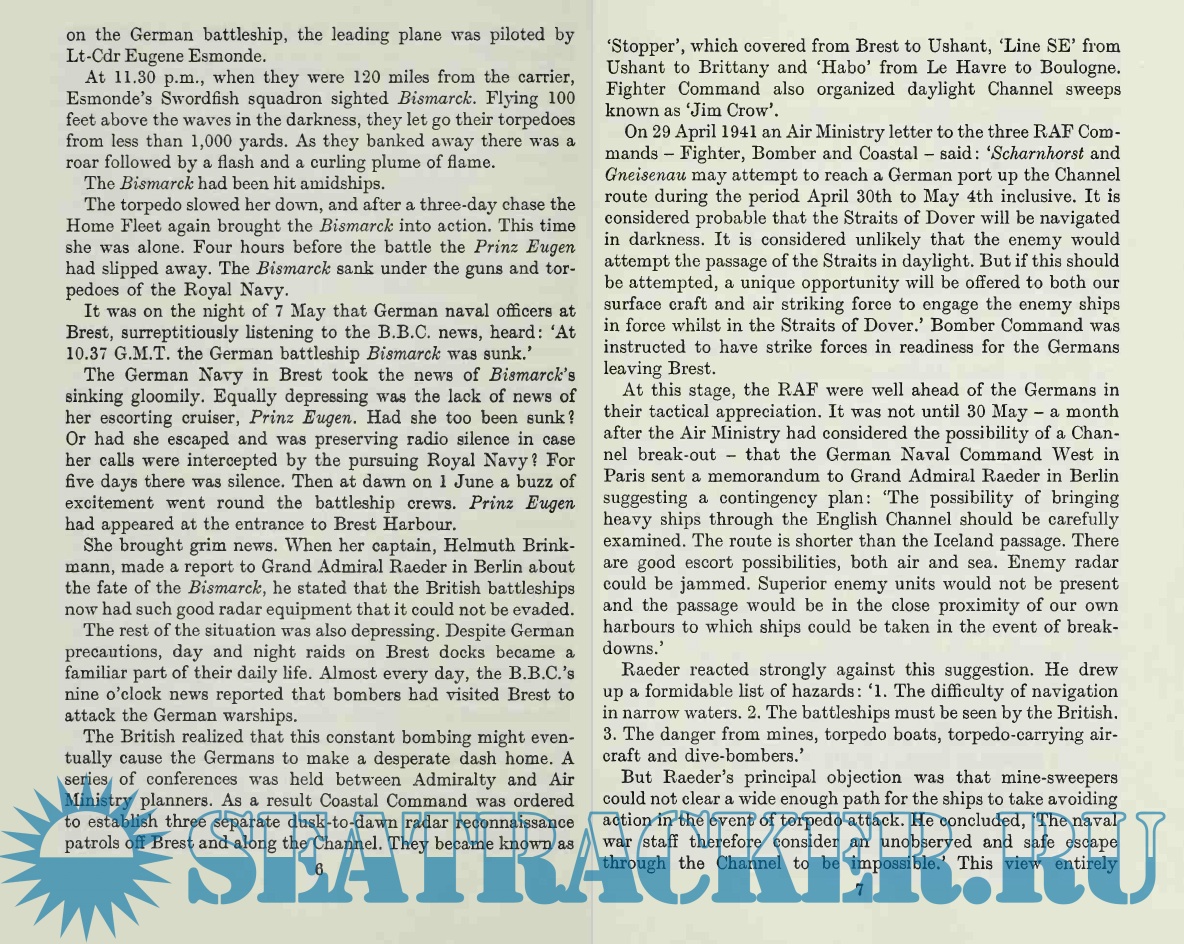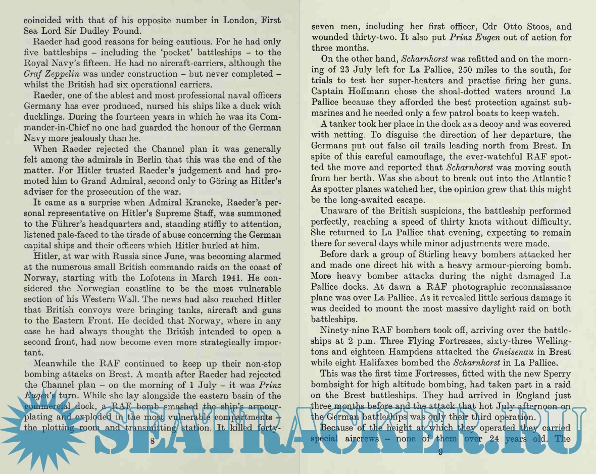 Year: 1970 Language: English Author: john potter Publisher: William Heinemann Ltd Format: PDF Quality: Scanned pages Pages count: 268 Description: This well-written book details the events surrounding the "breakout" of the German ships Scharnhorst, Gneisenau, and Prinz Eugen from the French port of Brest back to Germany, going straight through the narrow English Channel in broad daylight. The British were caught totally off-guard and, apart from a few valiant but suicidal attacks by a handful of planes and a few ships, the German ships sailed right under the cliffs of Dover and back to Germany practically unscathed. The event mortified and embarrassed the sea-going British and gave a boost to German morale at a time that their fortunes were firmly changing against them.
