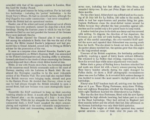 Description: This well-written book details the events surrounding the "breakout" of the German ships Scharnhorst, Gneisenau, and Prinz Eugen from the French port of Brest back to Germany, going straight through the narrow English Channel in broad daylight. The British were caught totally off-guard and, apart from a few valiant but suicidal attacks by a handful of planes and a few ships, the German ships sailed right under the cliffs of Dover and back to Germany practically unscathed. The event mortified and embarrassed the sea-going British and gave a boost to German morale at a time that their fortunes were firmly changing against them.